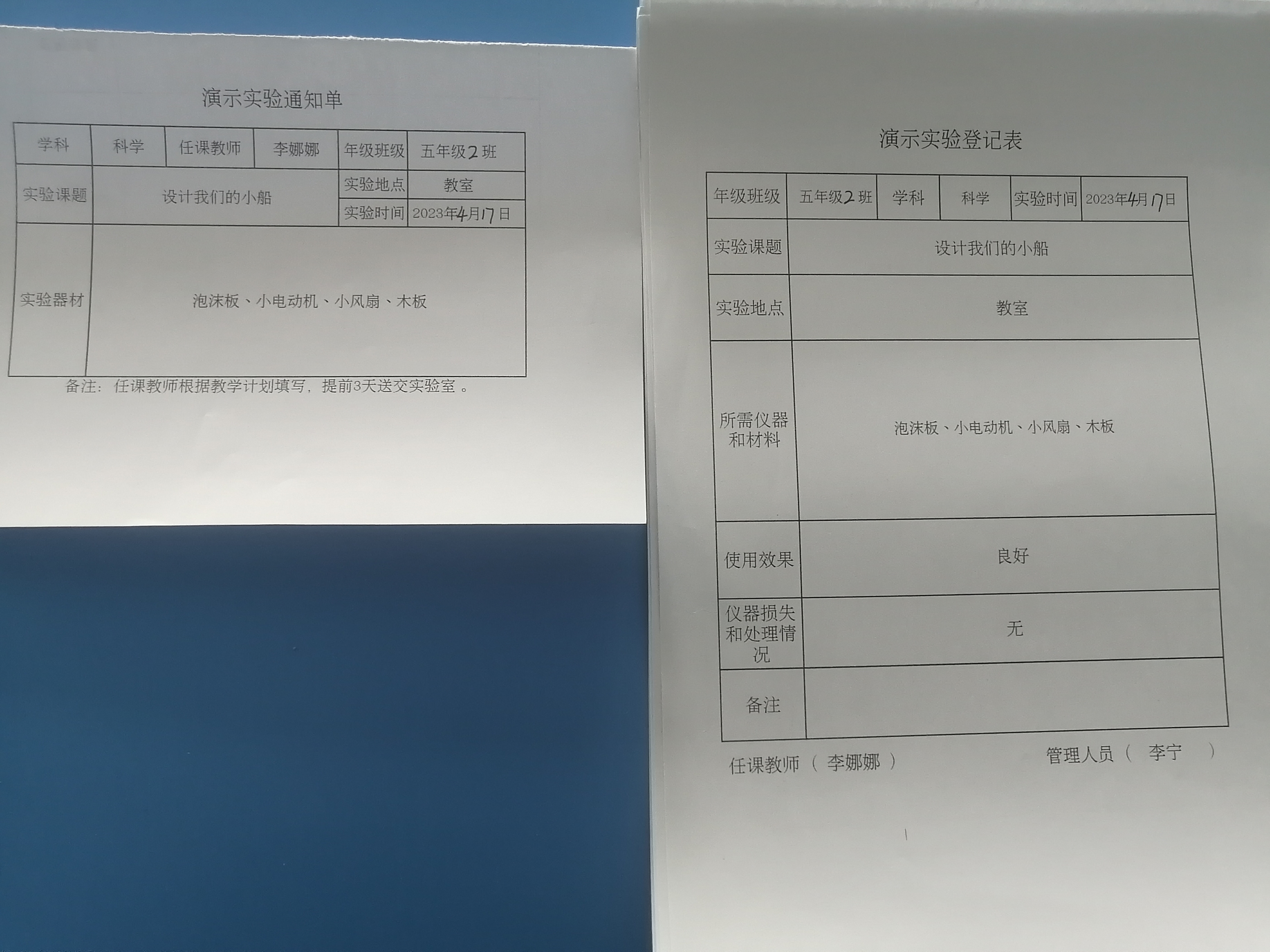 实验登记表