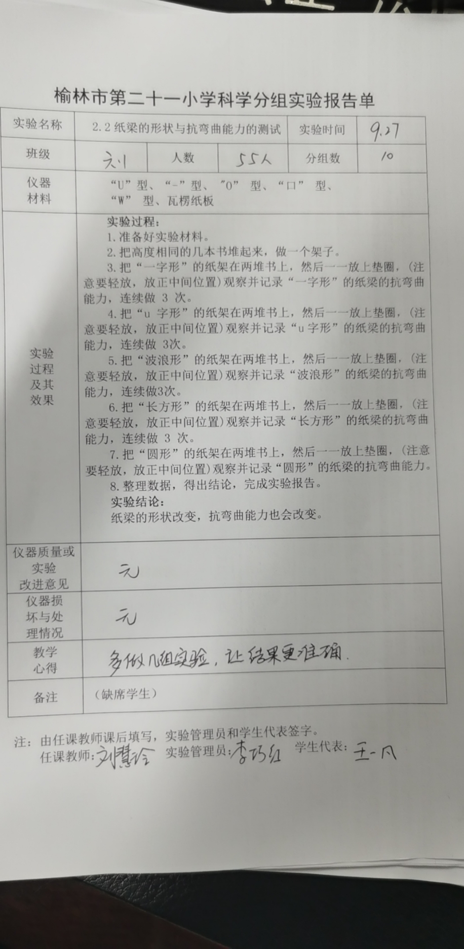 2.2纸梁的形状与抗弯曲能力的测试