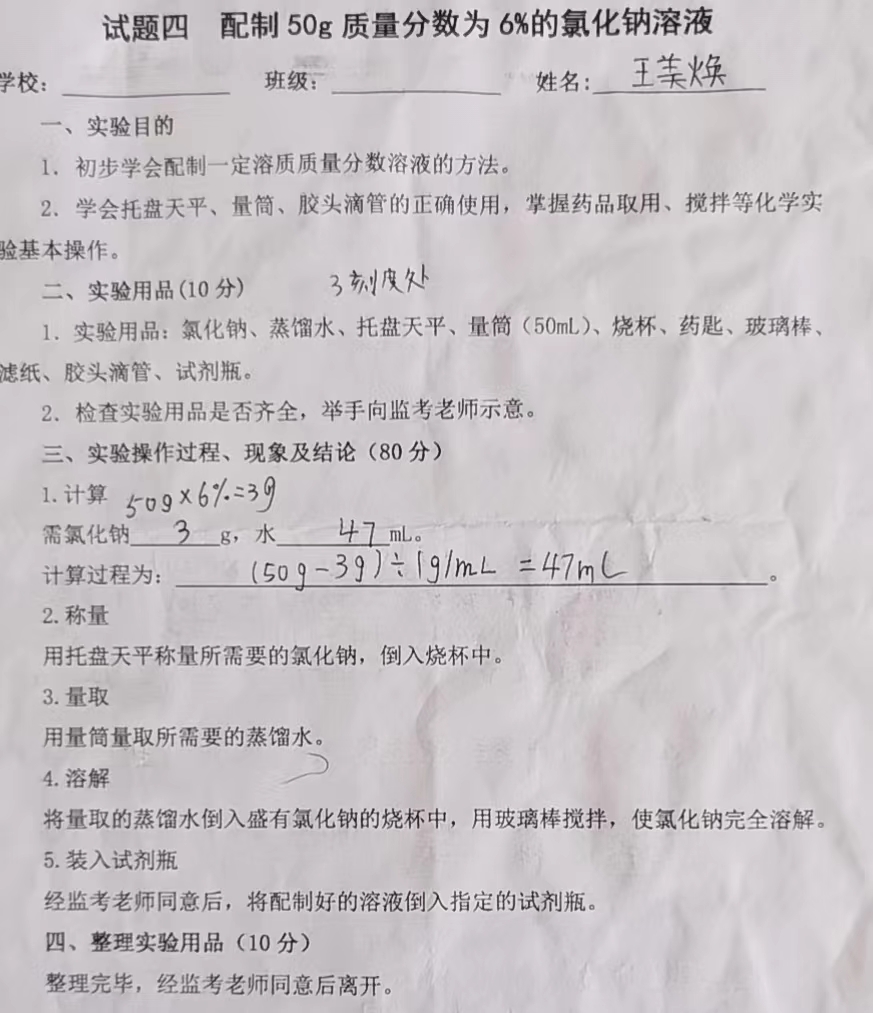 配制50课6%的氯化钠溶液