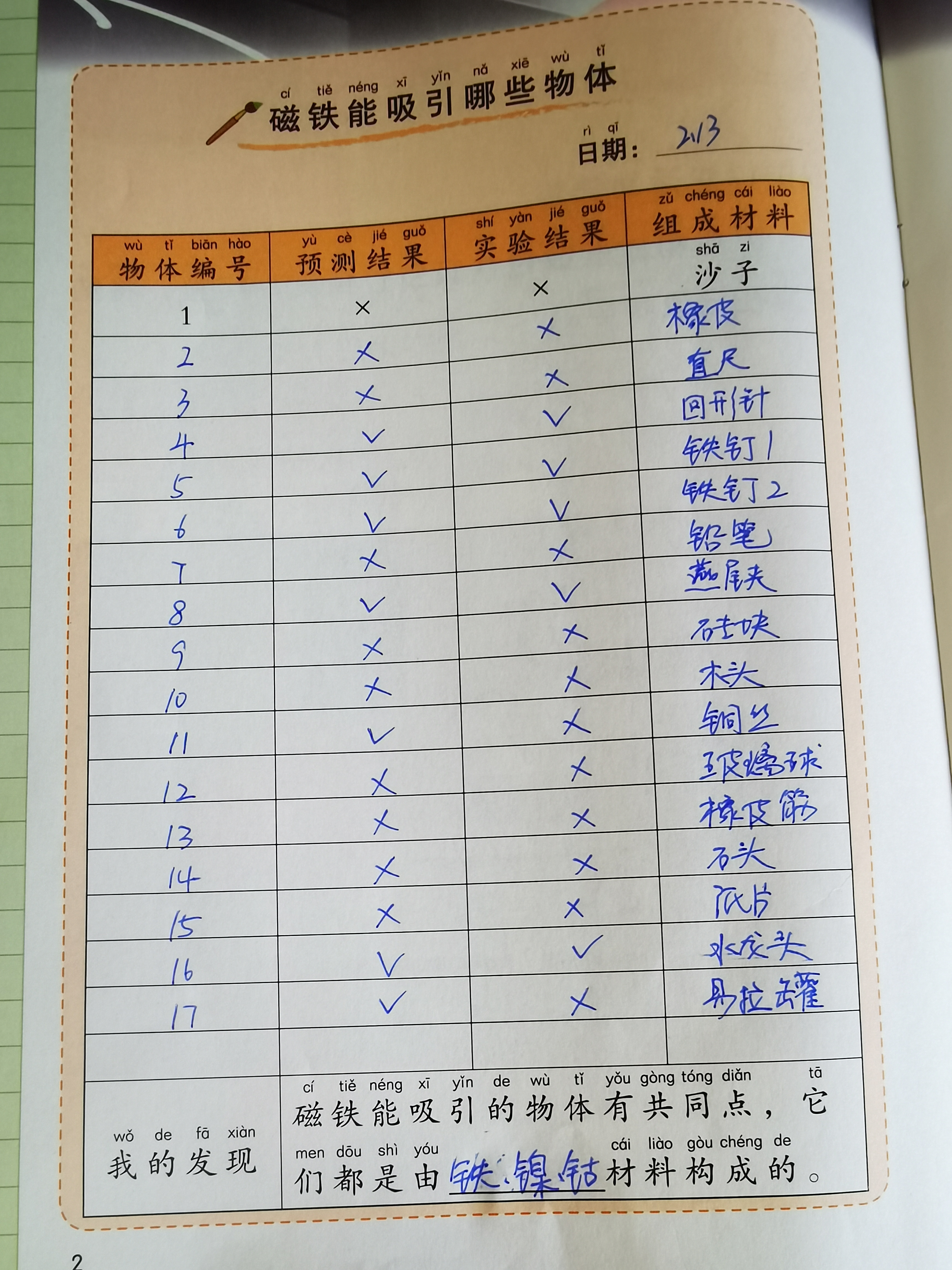 下册-第一章>第一节>磁铁能吸引哪些物质