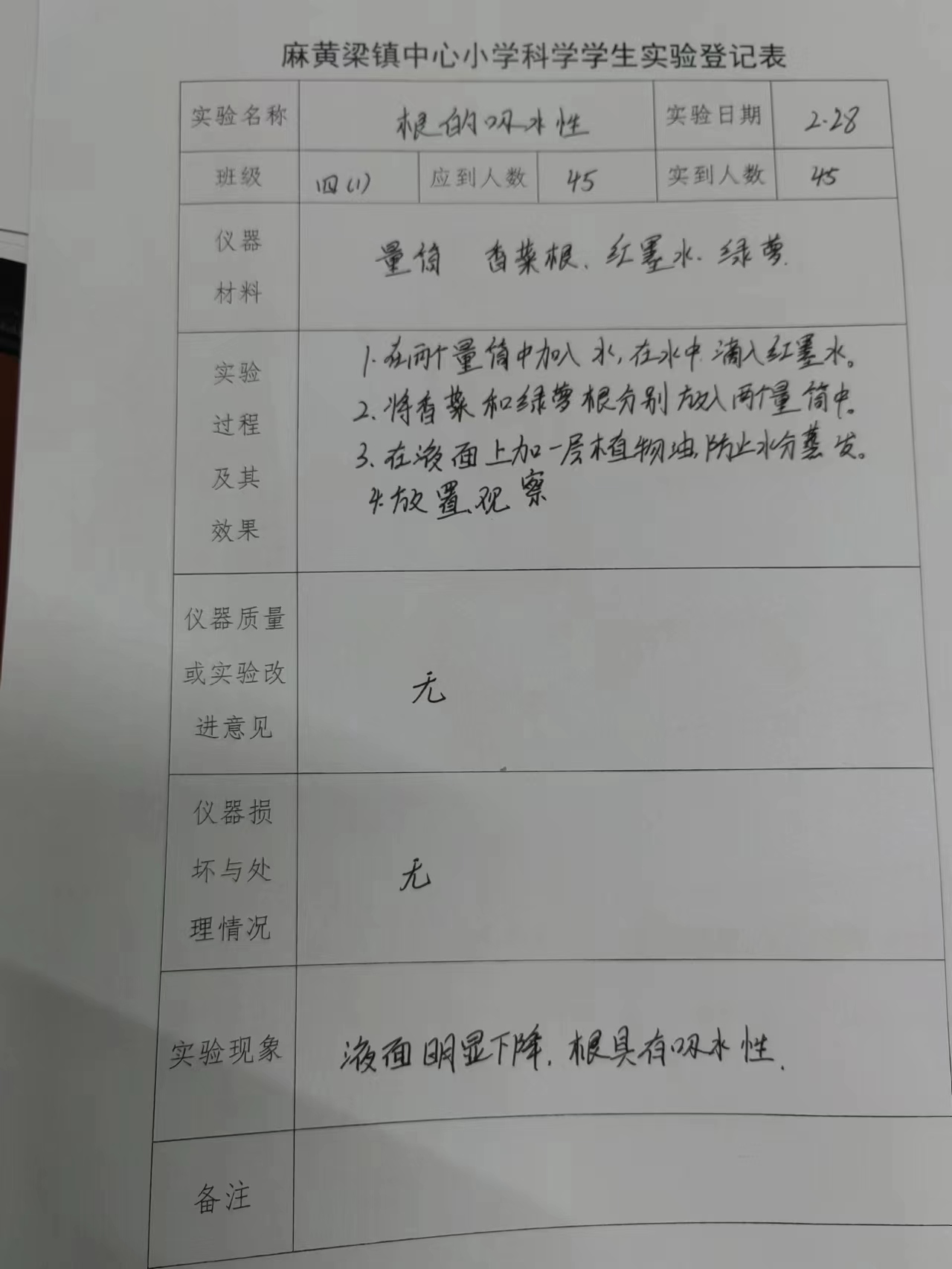 实验登记表