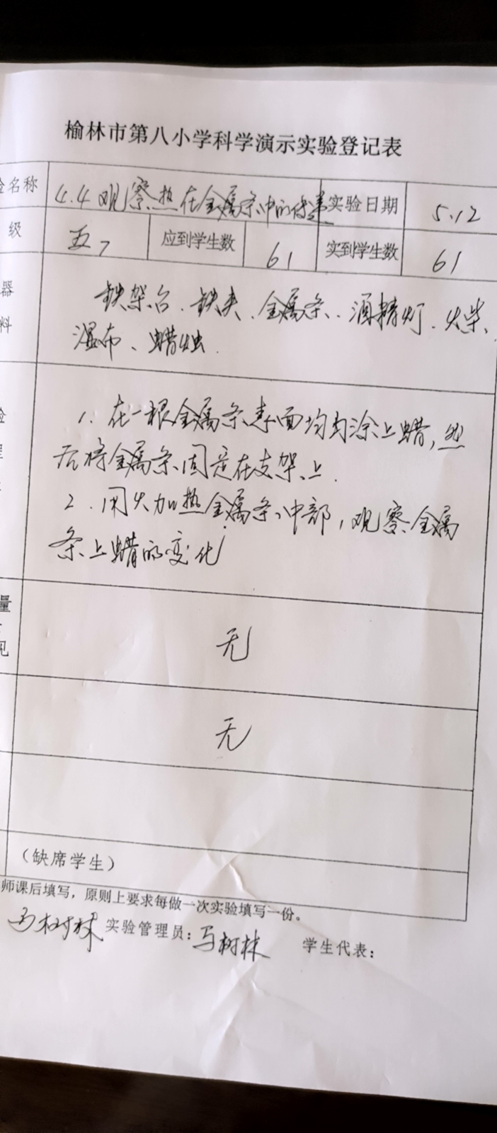 实验登记表