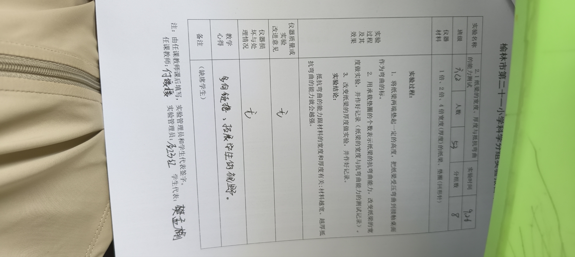 纸梁的宽度、厚度与与抵抗弯曲能力测试