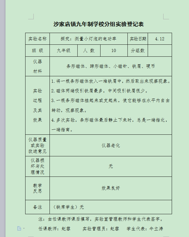 实验登记表