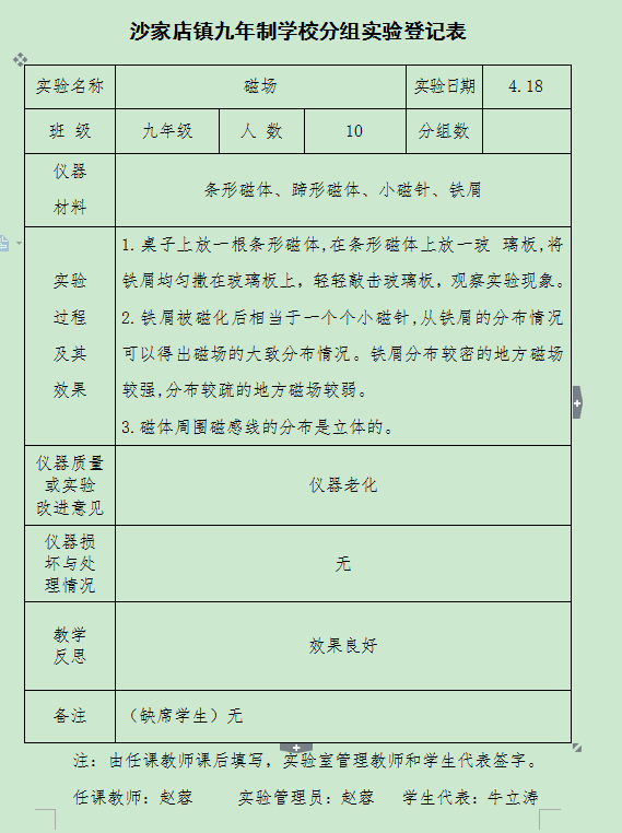 实验登记表