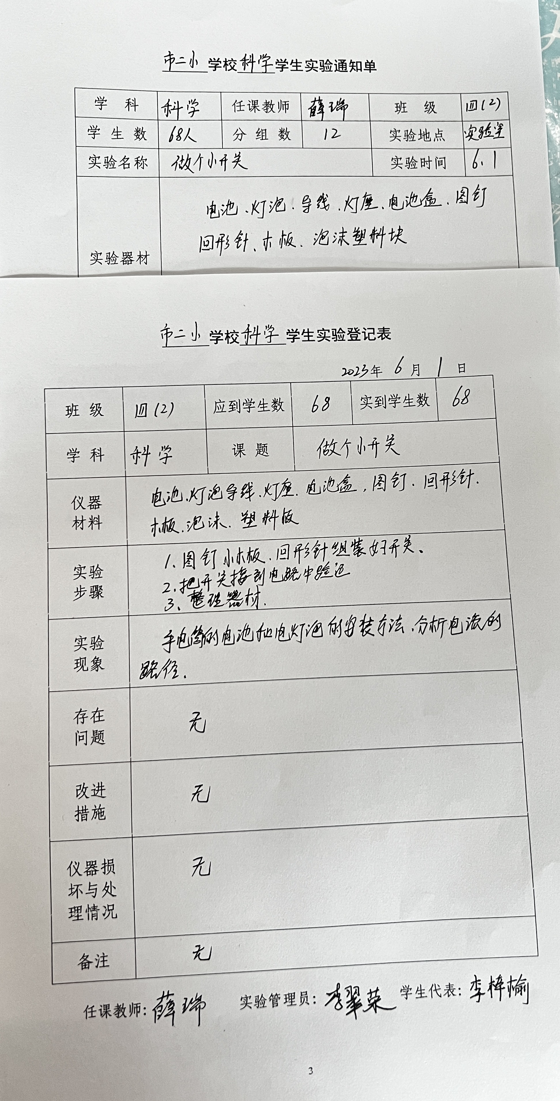 实验登记表