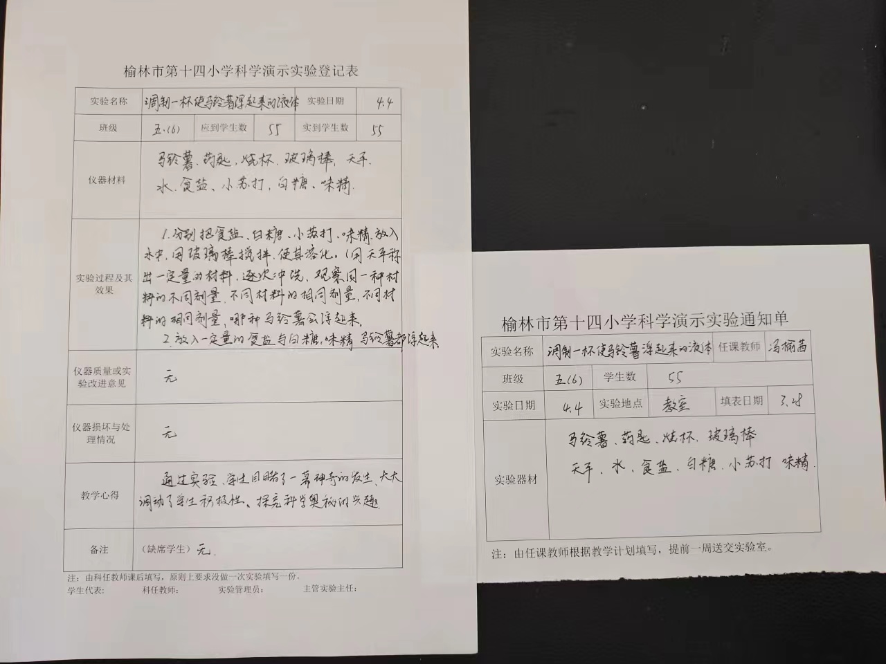 实验登记表