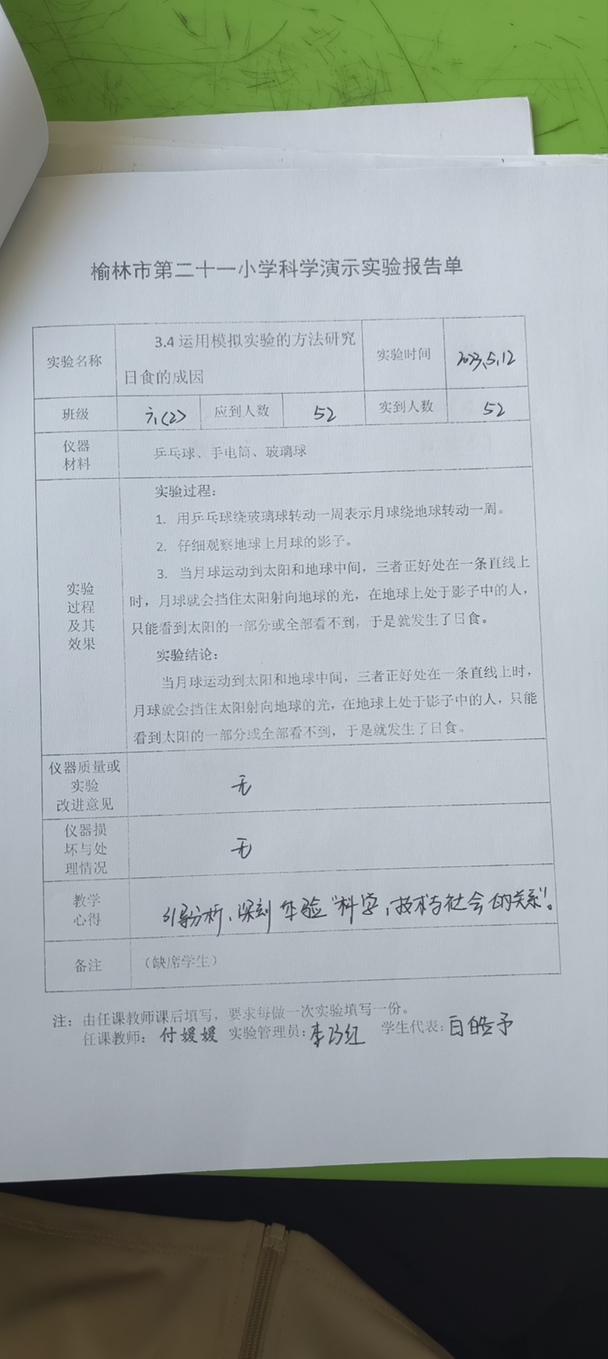 实验登记表