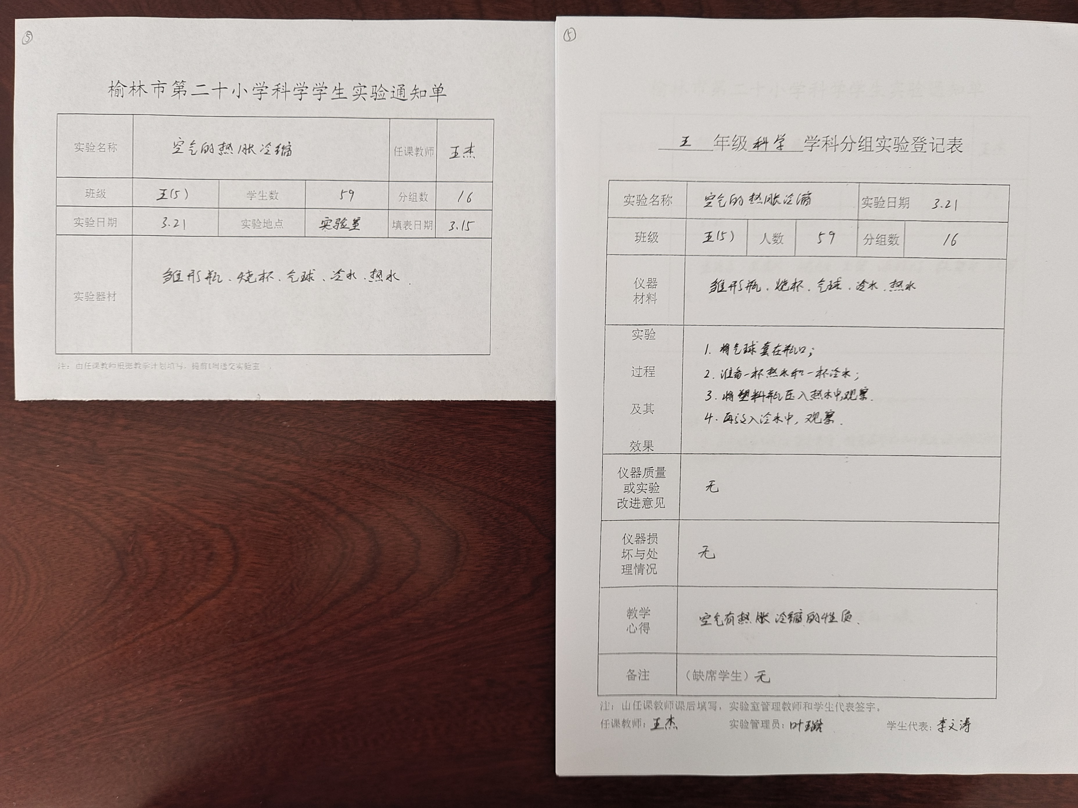 实验登记表