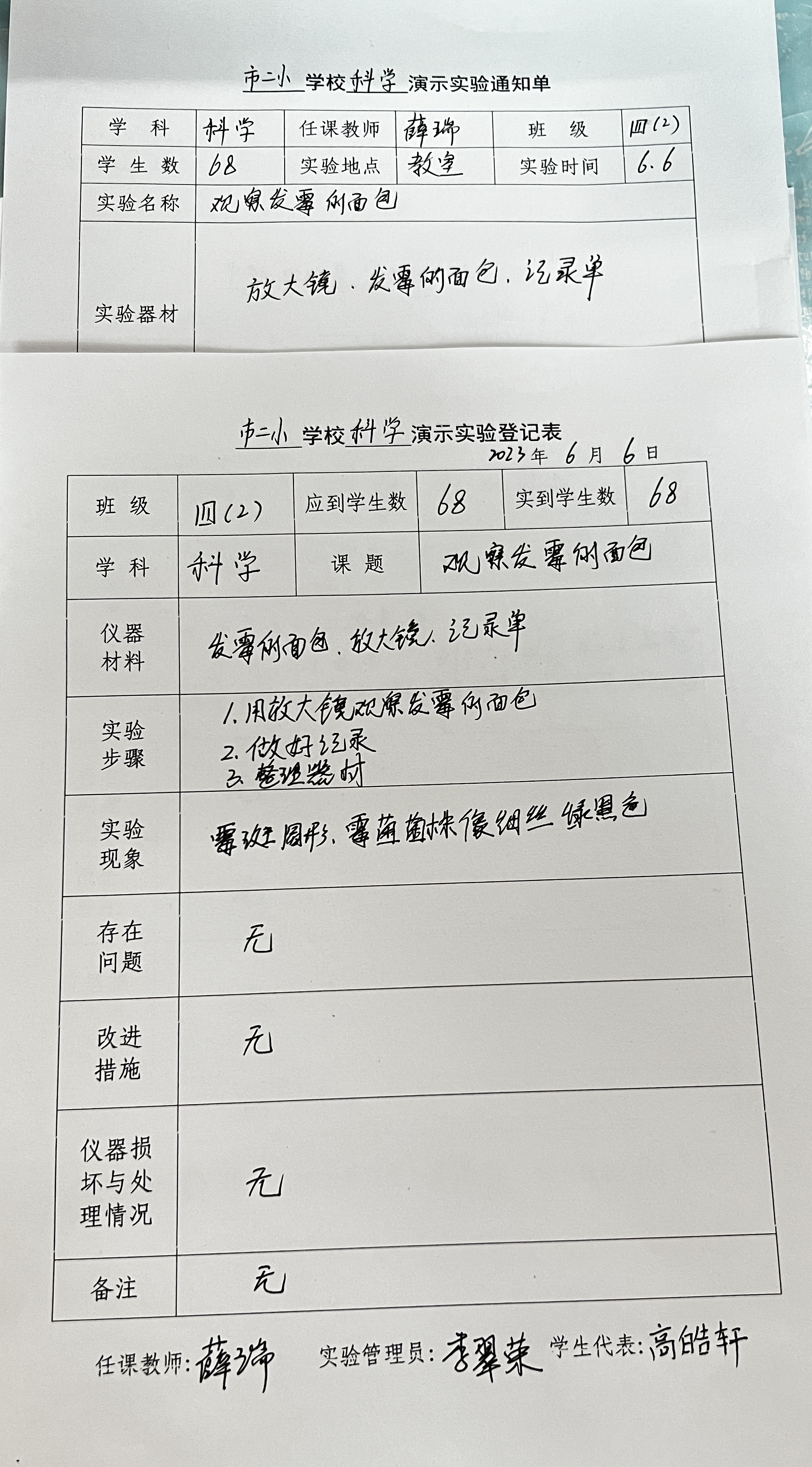 实验登记表
