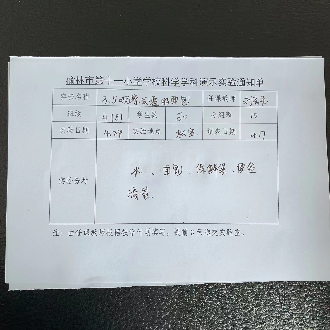 实验登记表