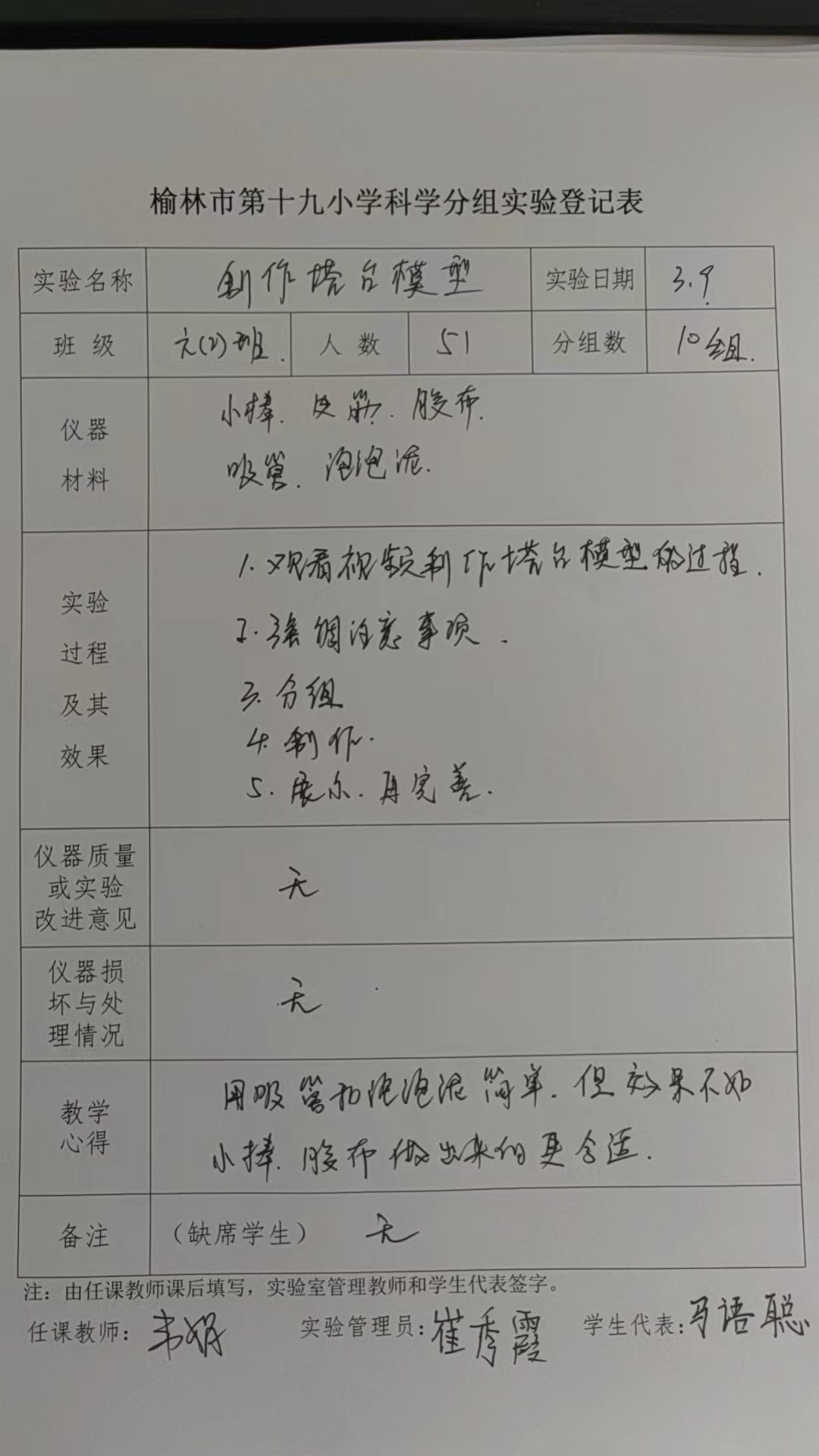 实验登记表