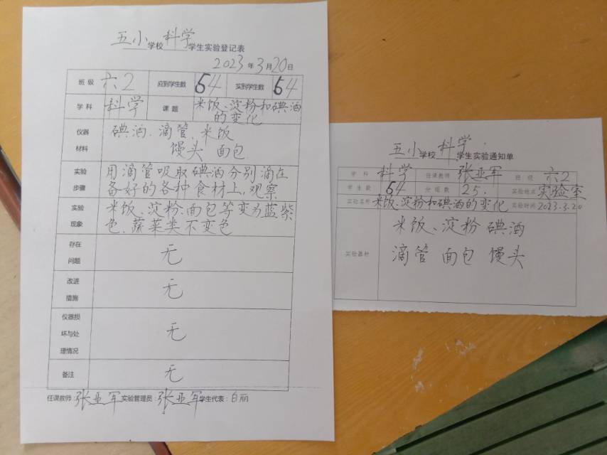 实验登记表