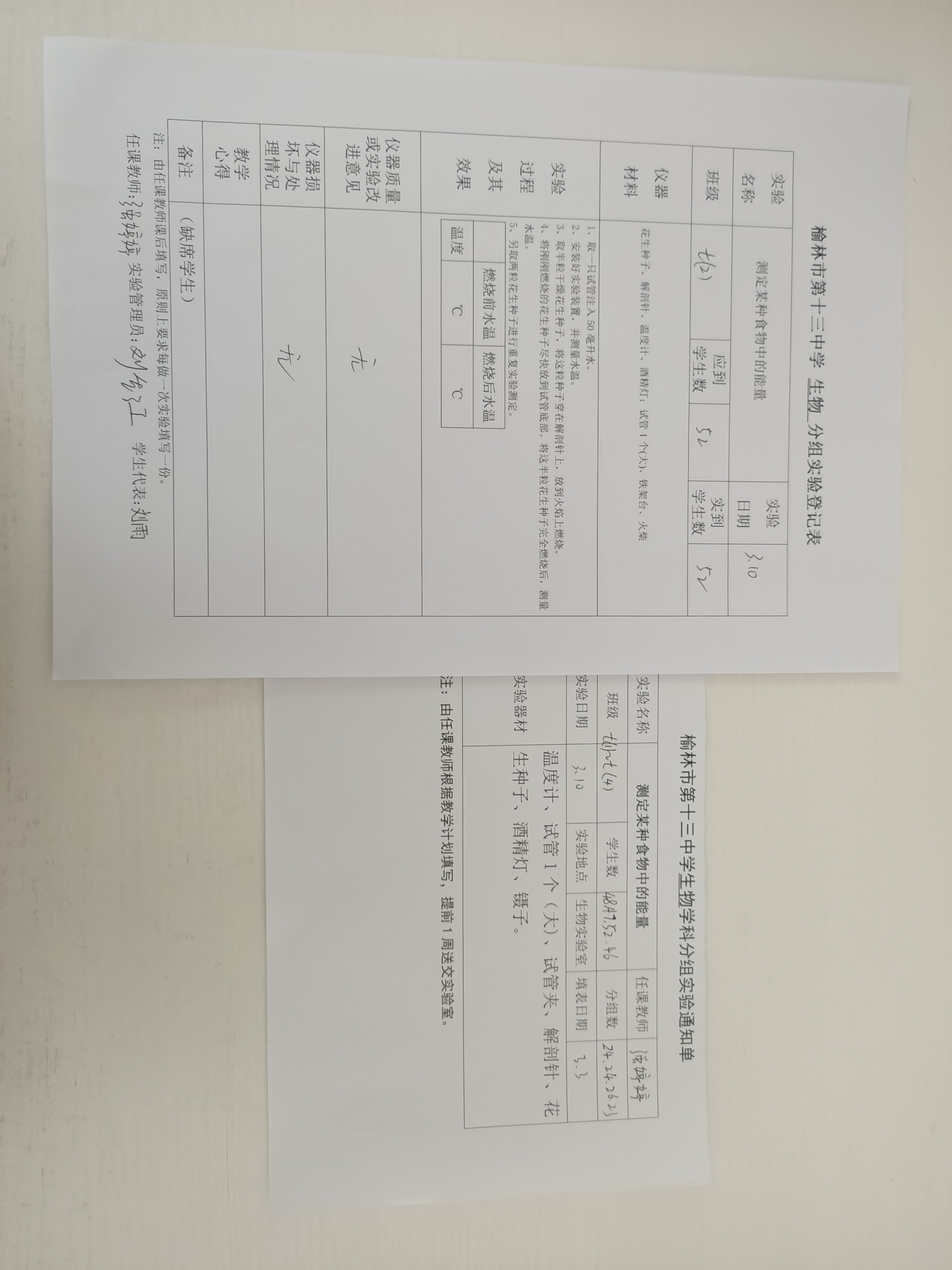 实验登记表