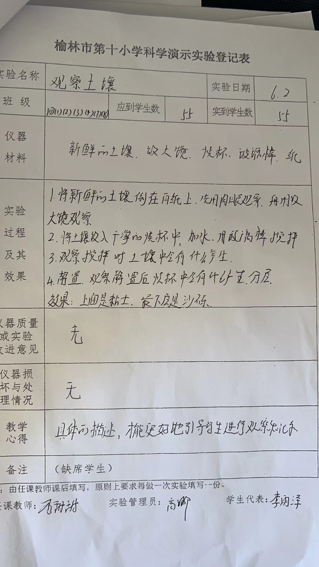 实验登记表