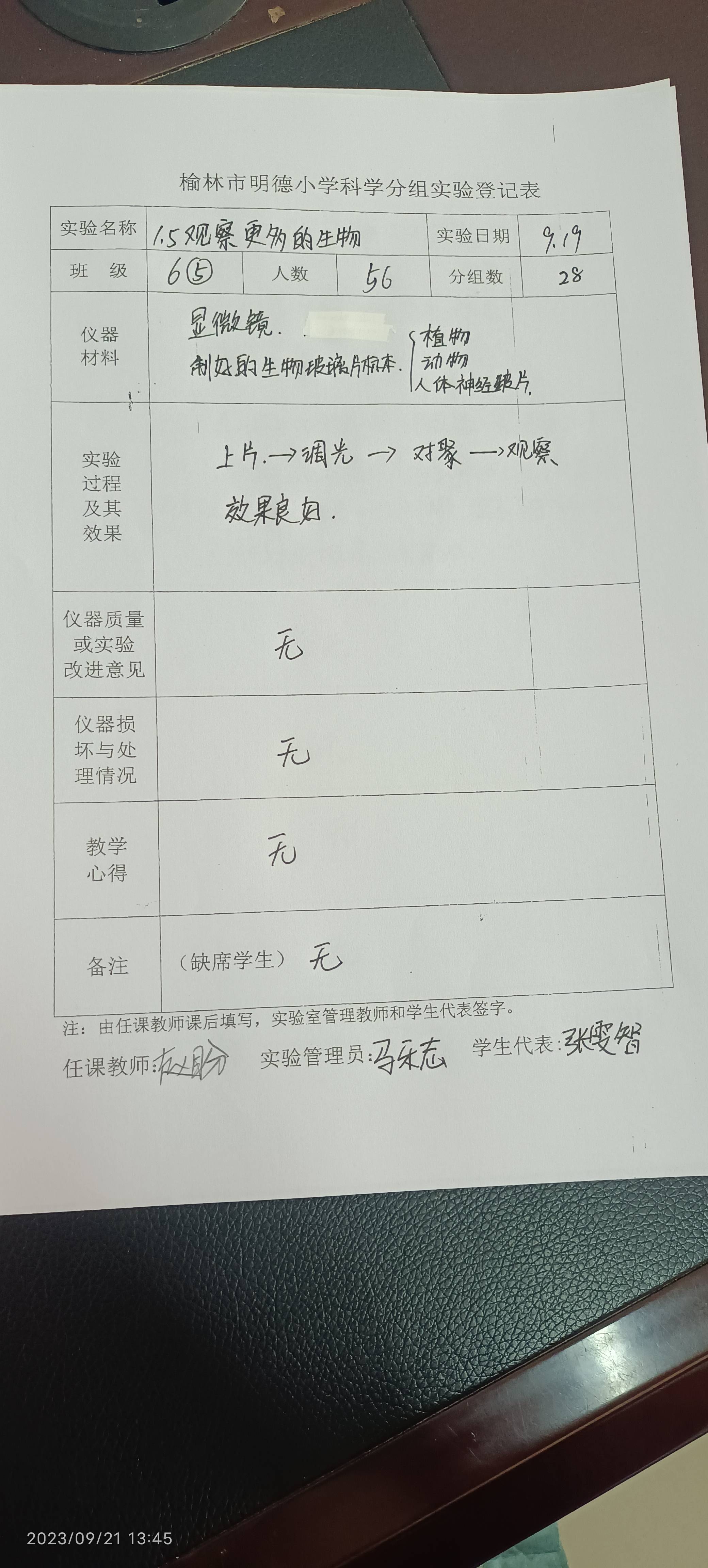 实验登记表