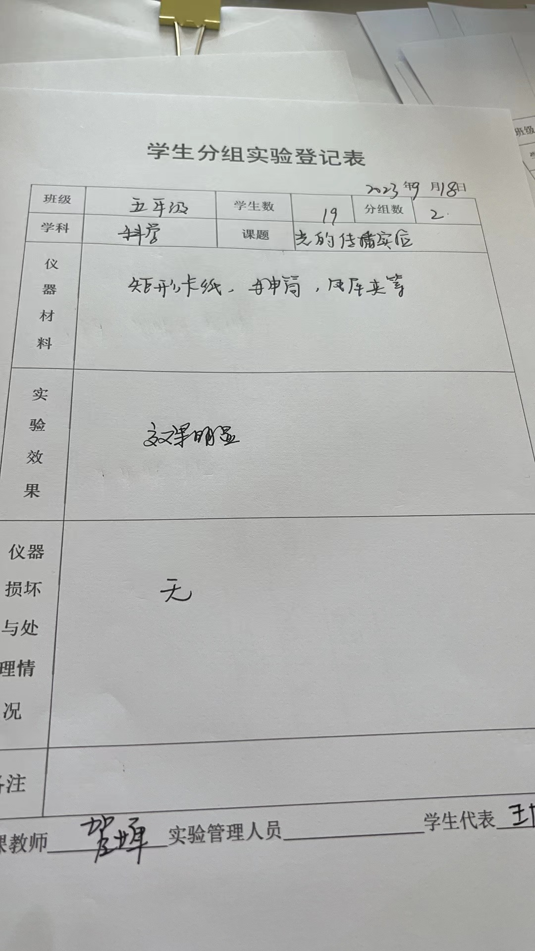 实验登记表