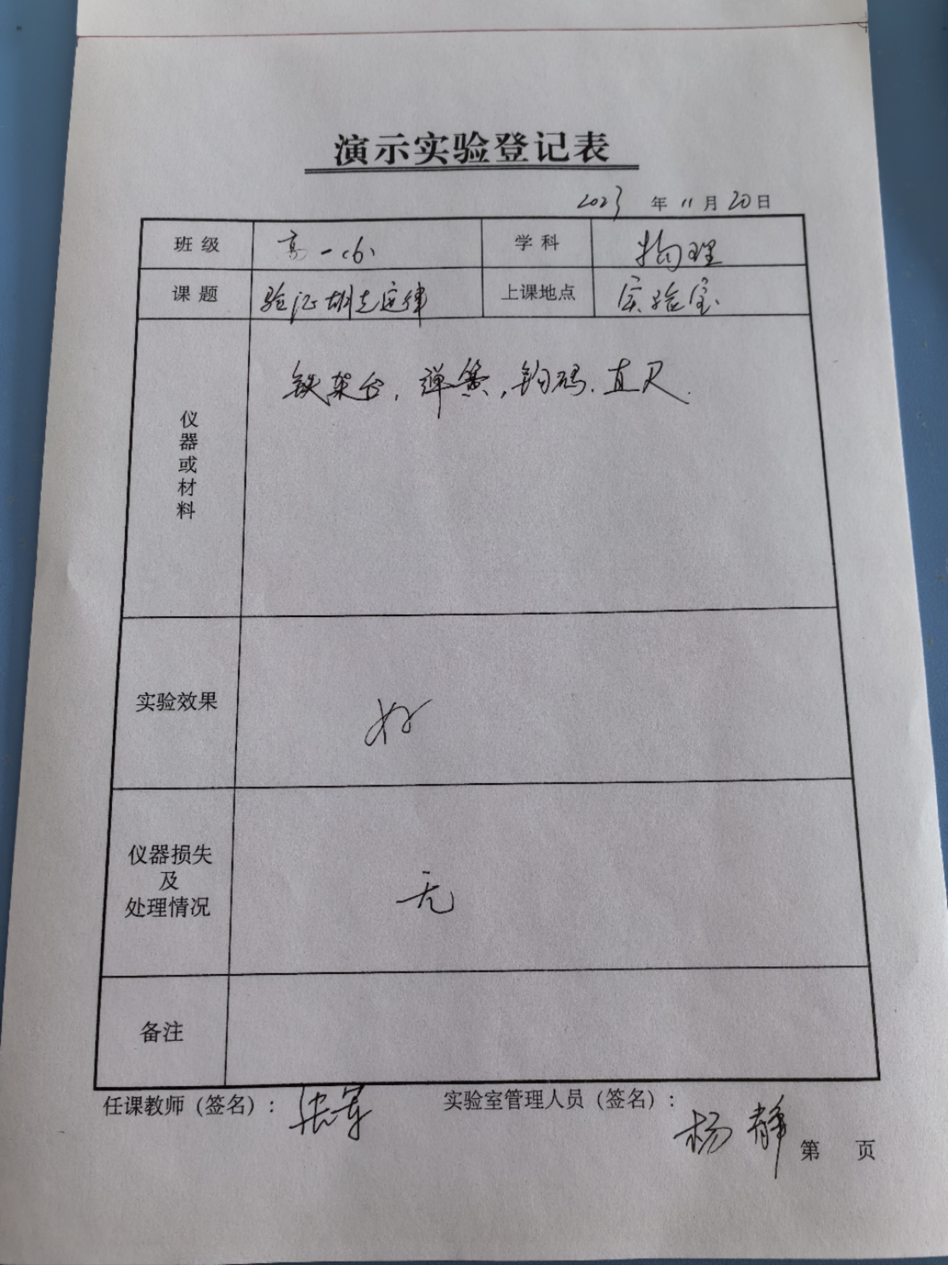 实验登记表