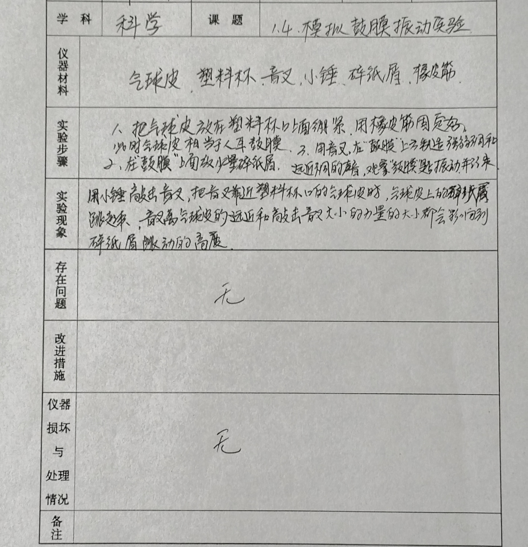 模拟鼓膜振动实验