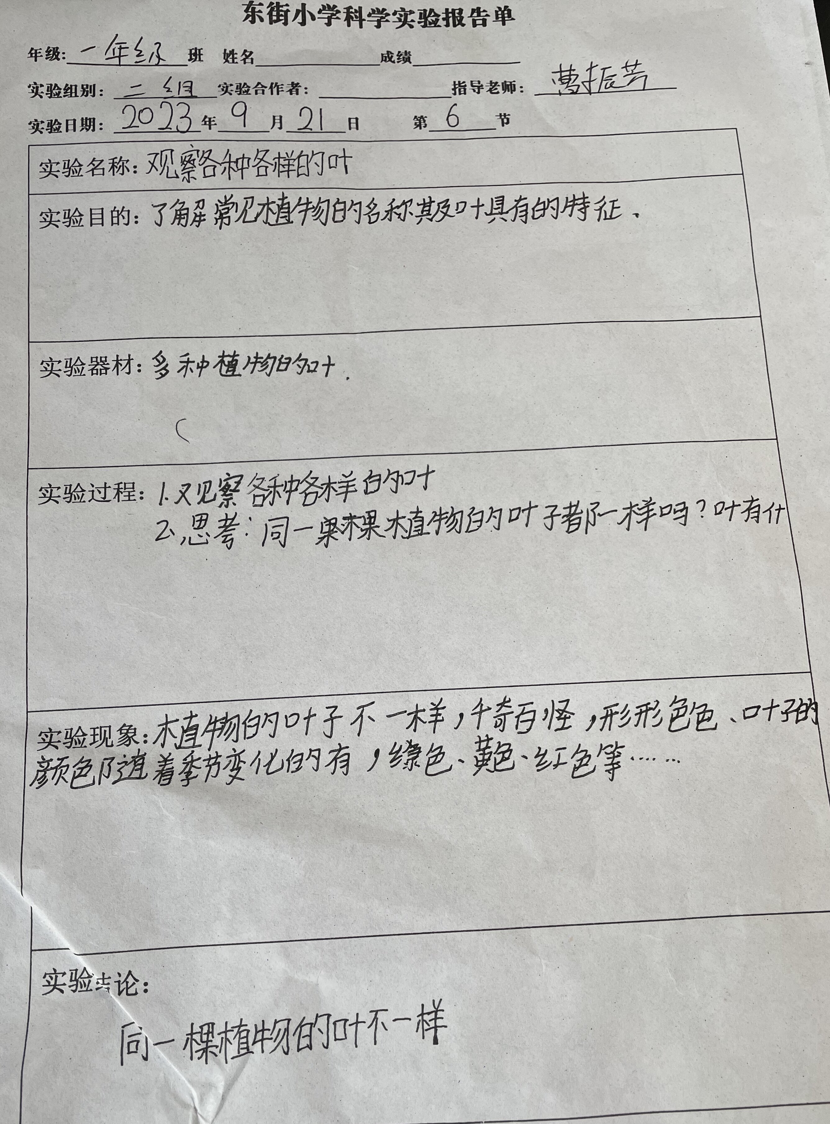 观察各种各样的叶