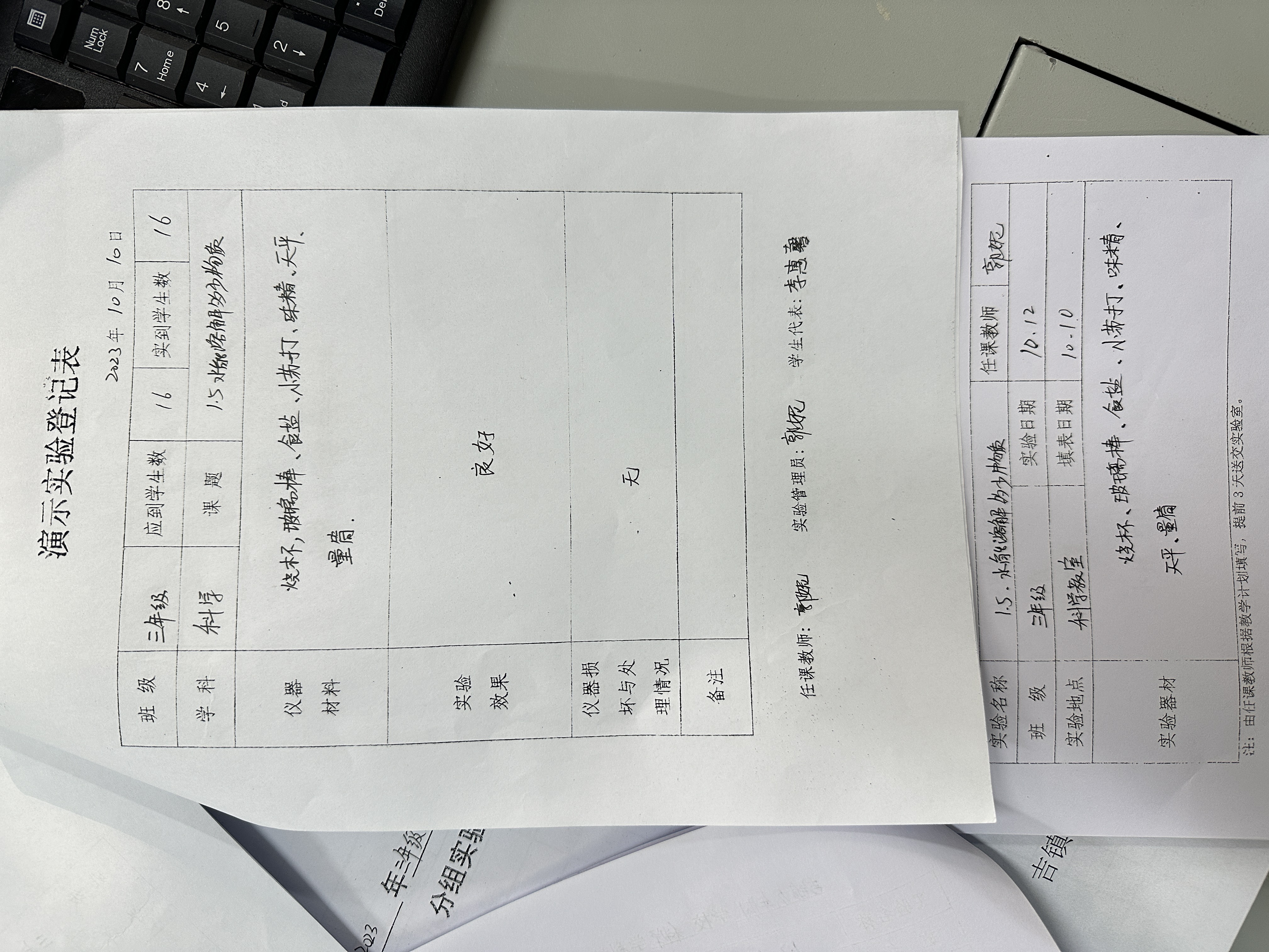 实验登记表