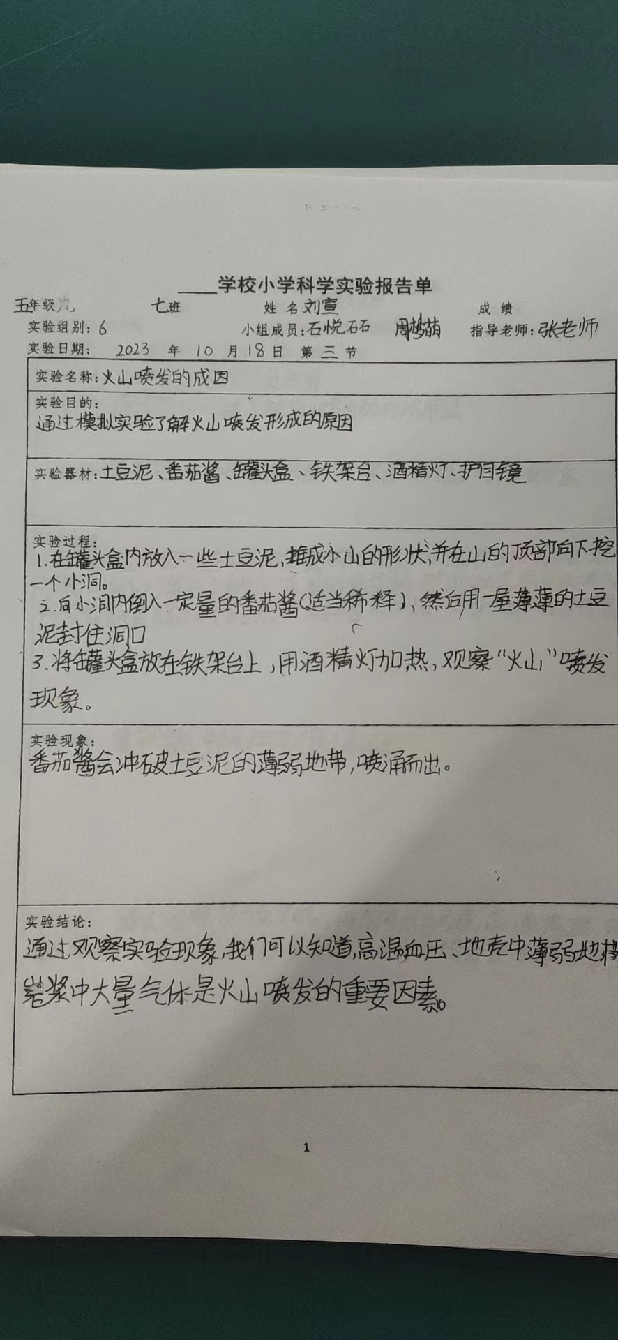 模拟火山喷发实验