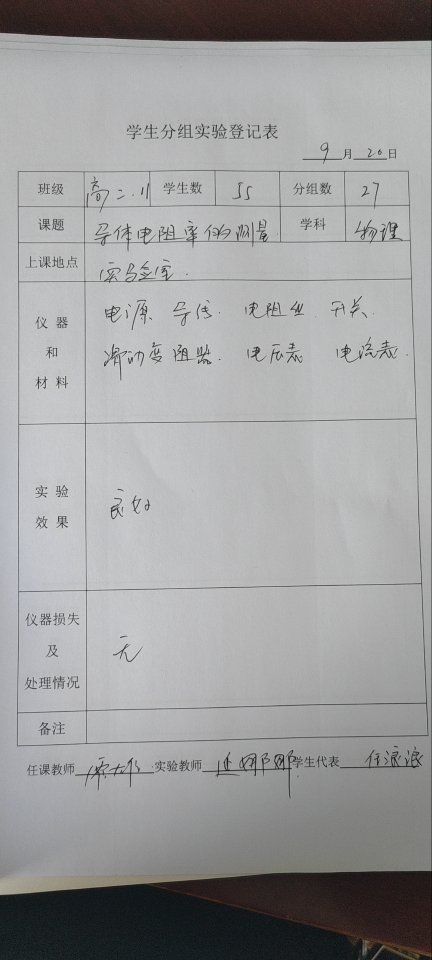 实验登记表