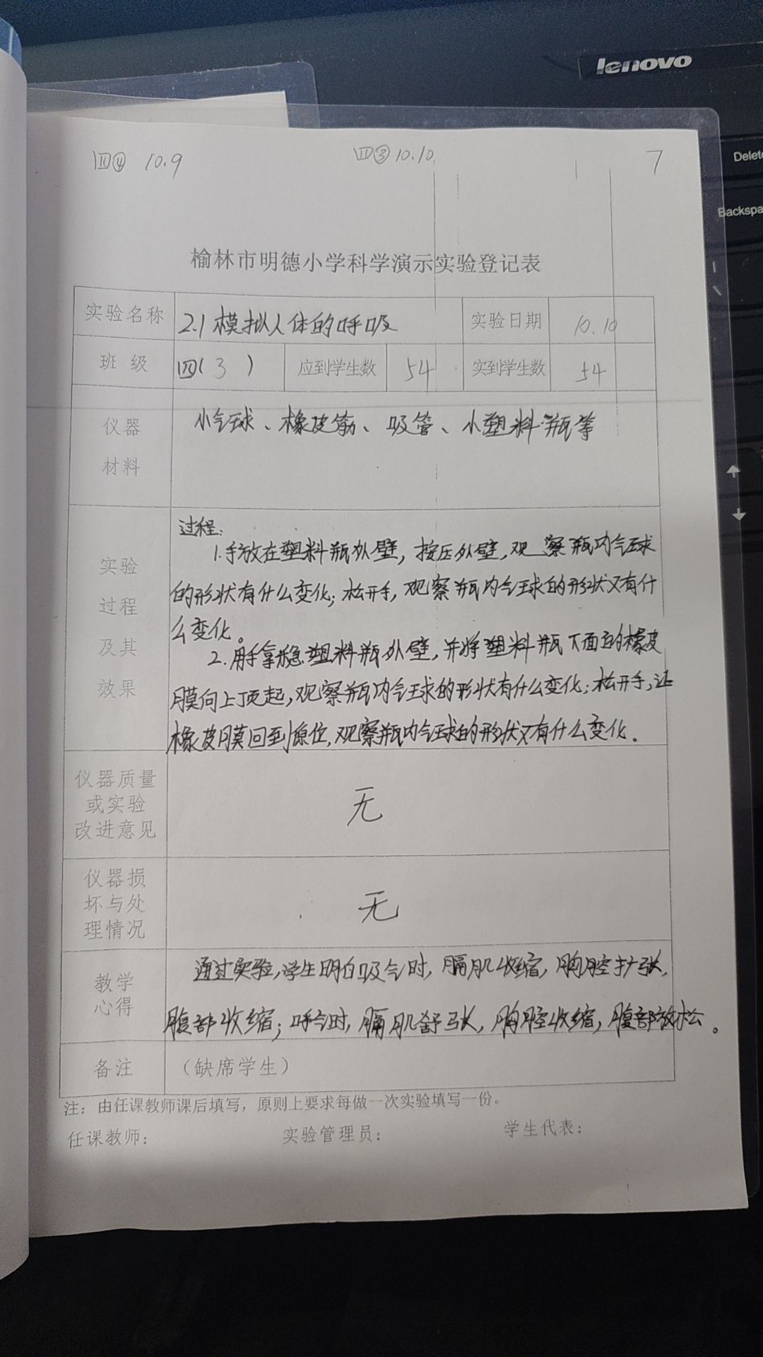 实验登记表