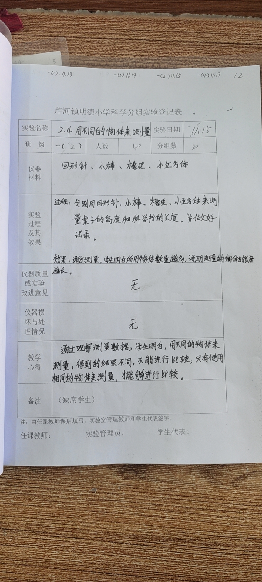 实验登记表