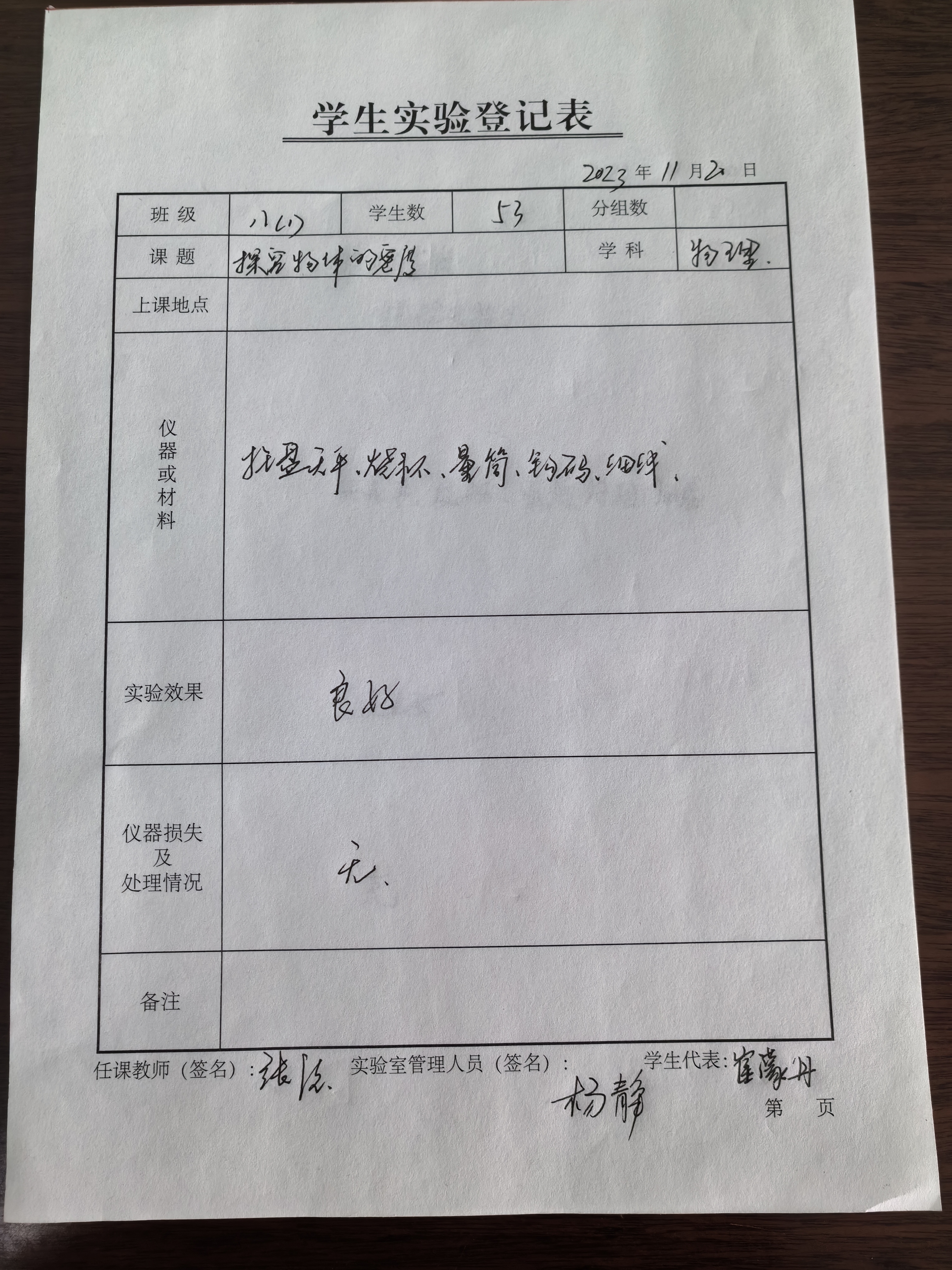 实验登记表