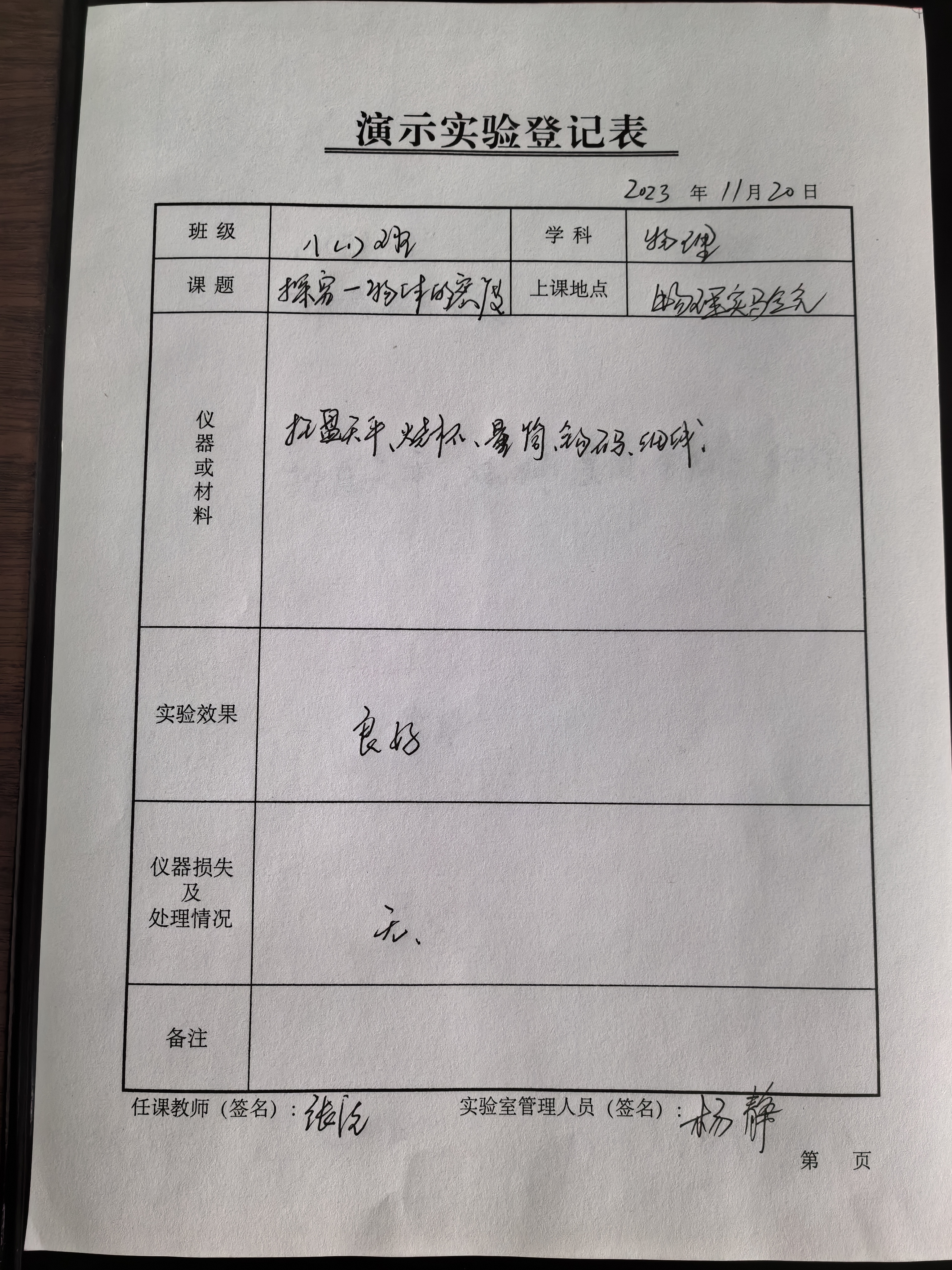 实验登记表