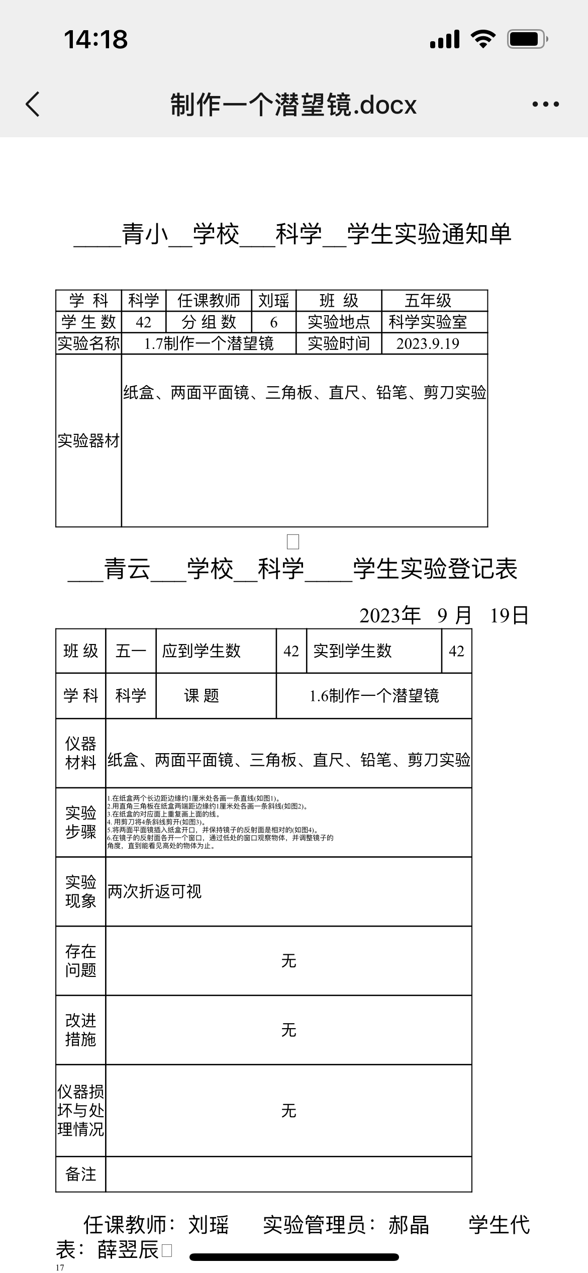 实验登记表