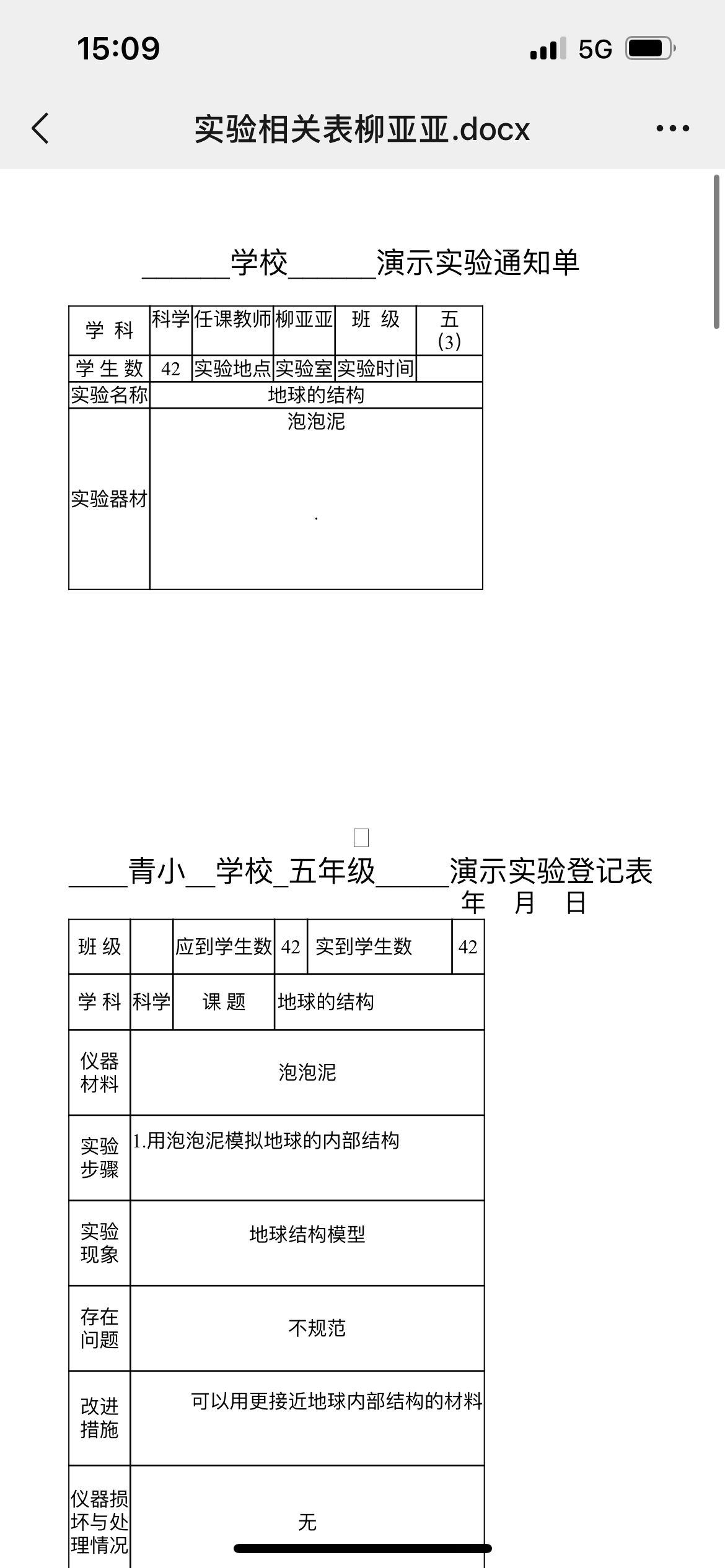 实验登记表