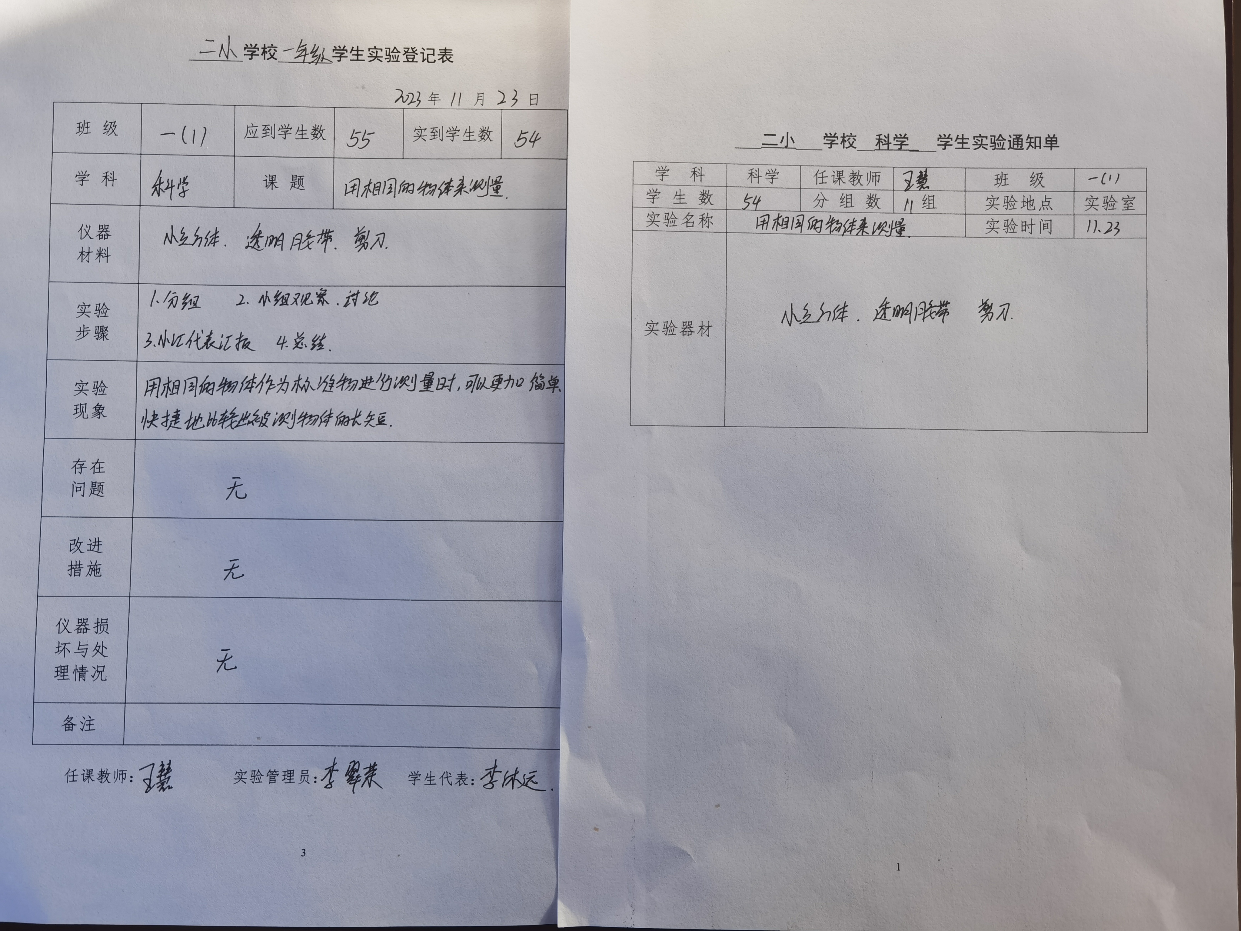 实验登记表