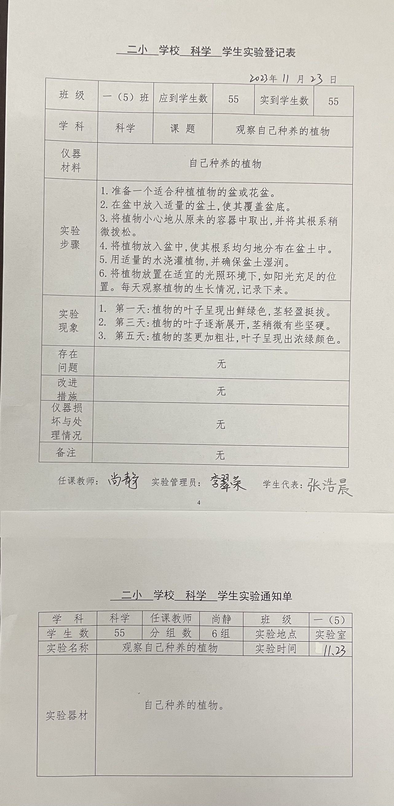 实验登记表