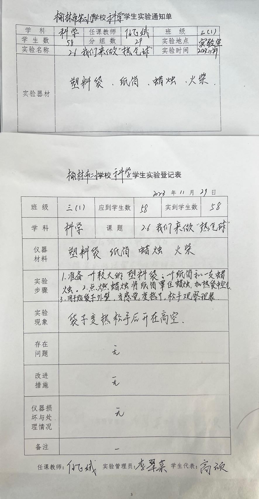 实验登记表