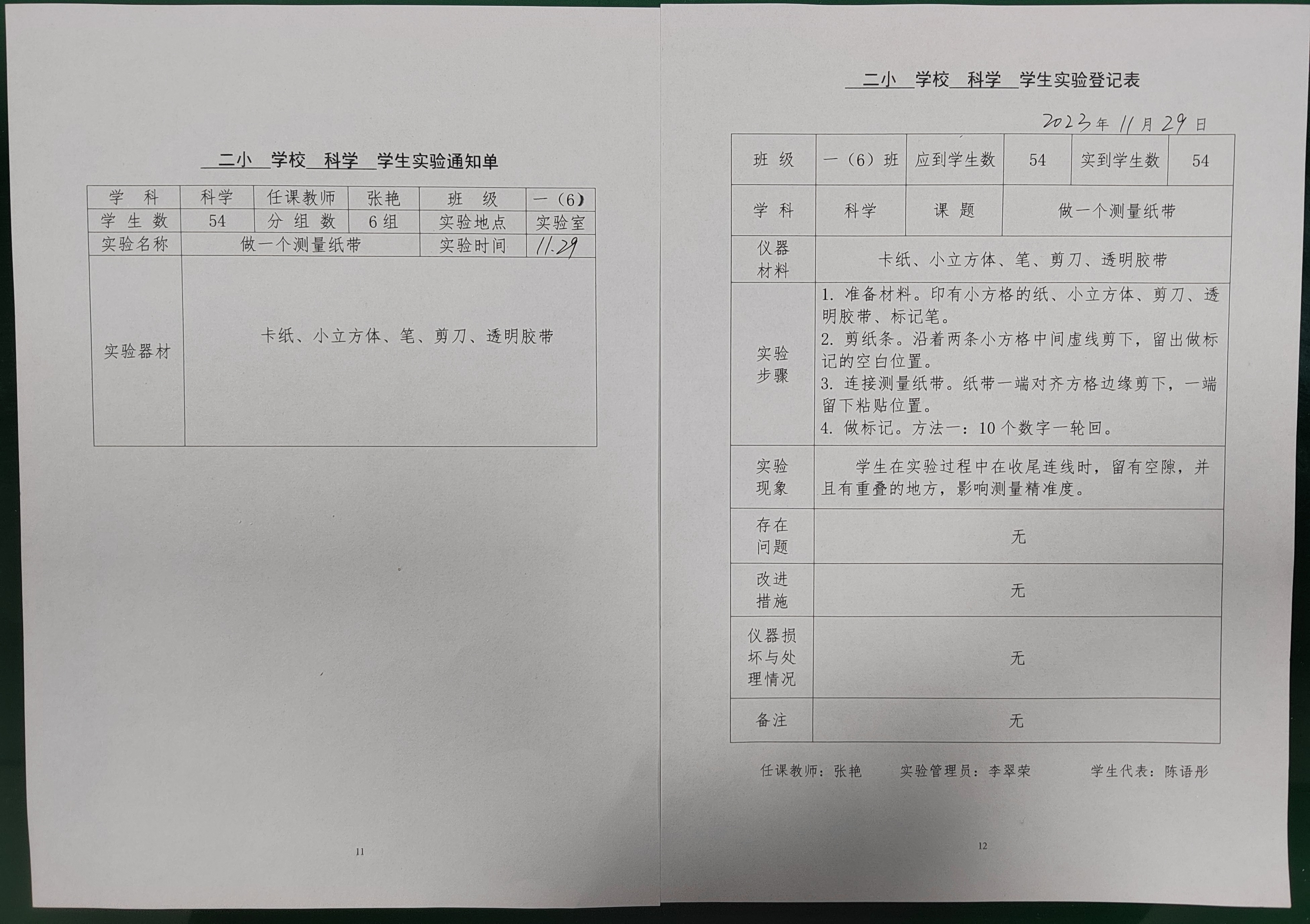 实验登记表