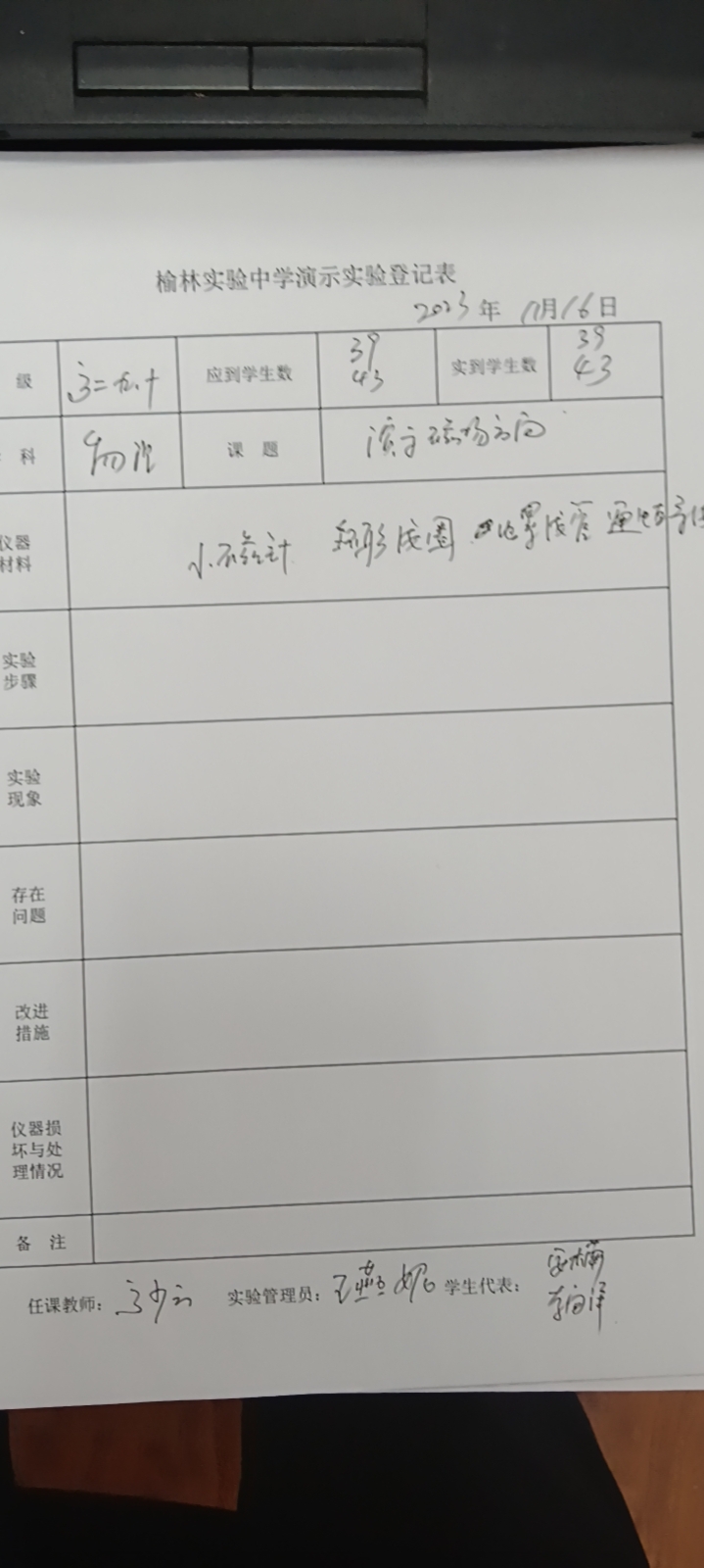 实验登记表