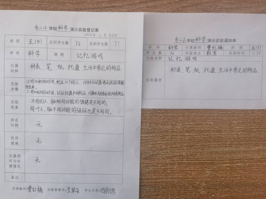 实验登记表