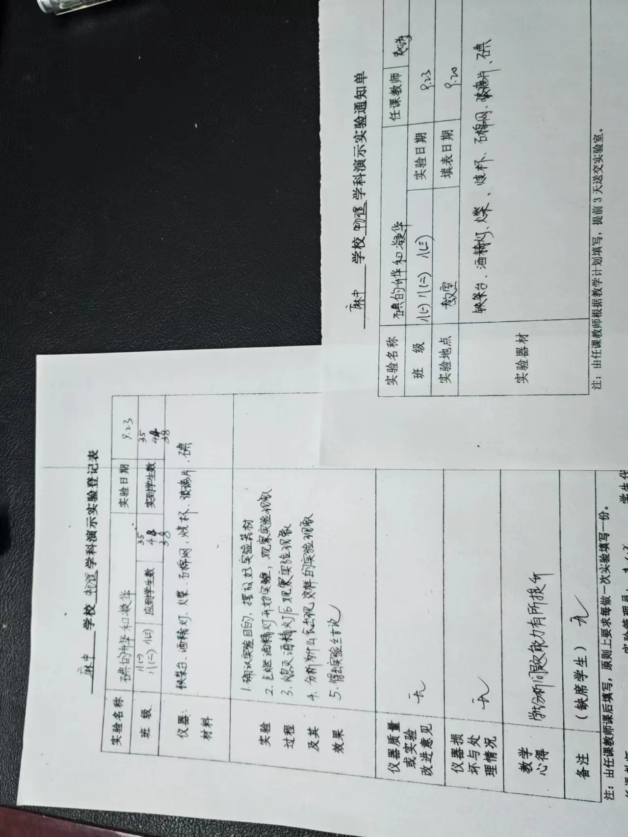 实验登记表