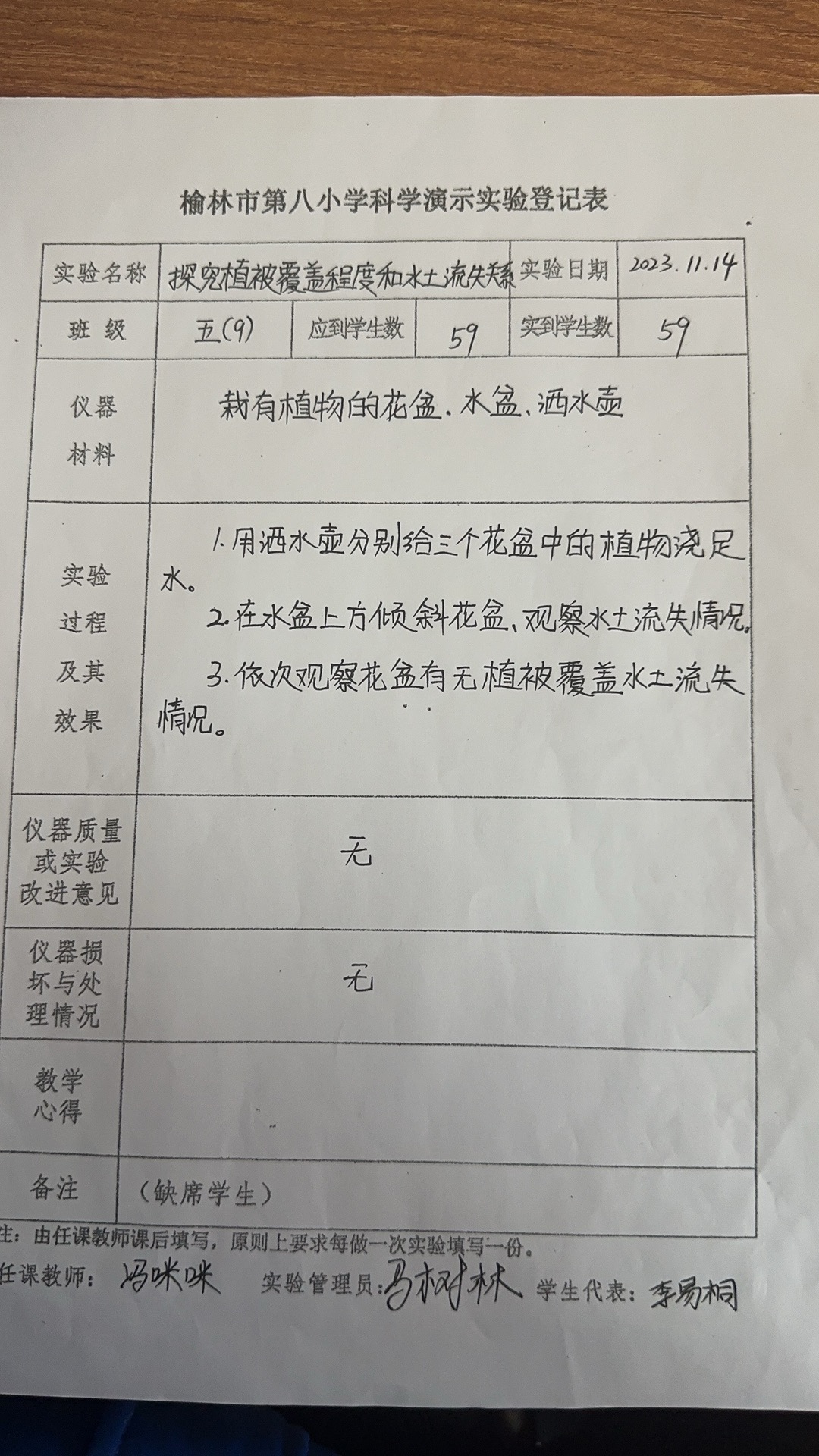 实验登记表