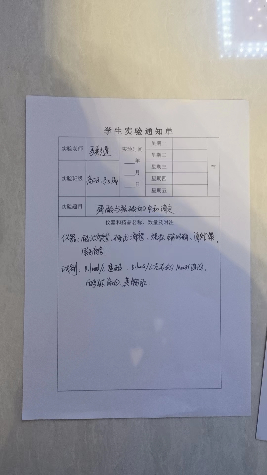 实验登记表