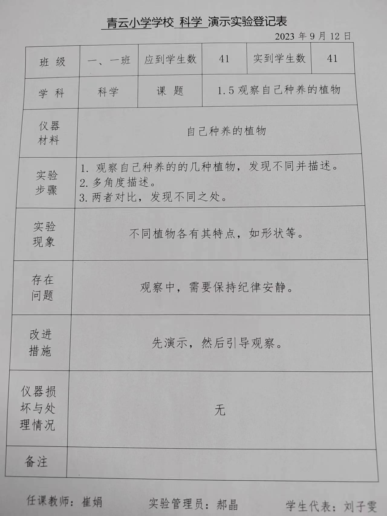 实验登记表