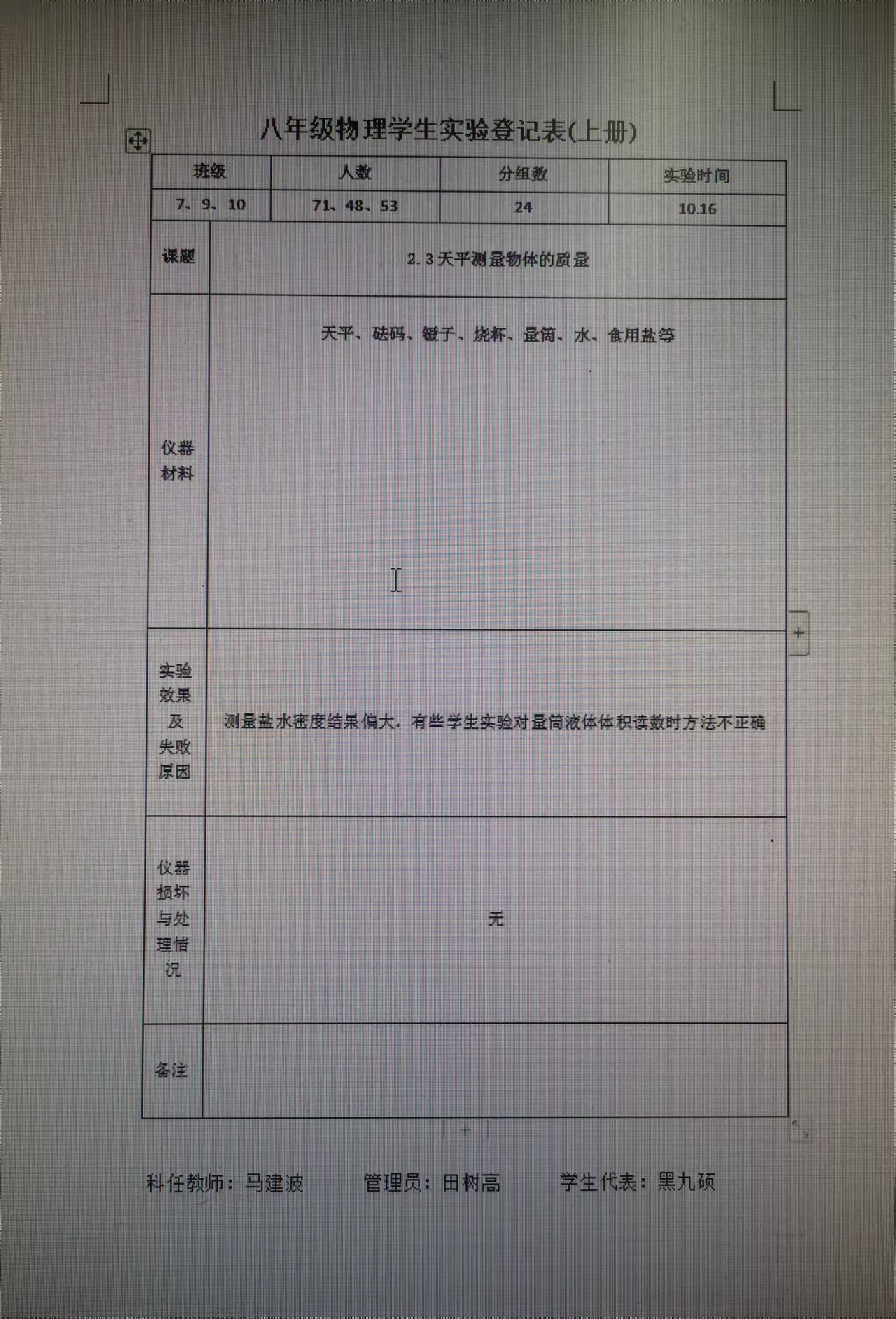 实验登记表