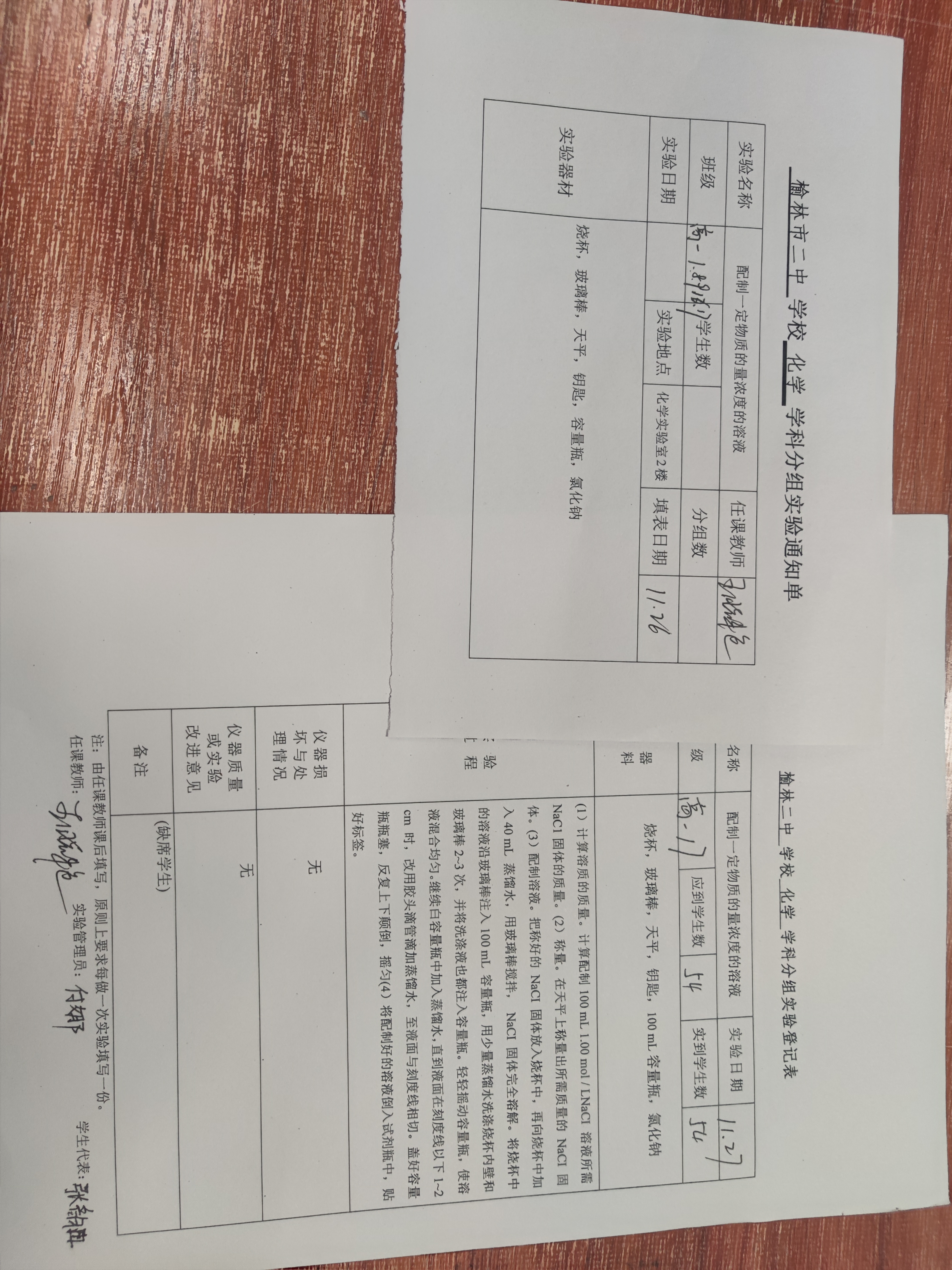 实验登记表