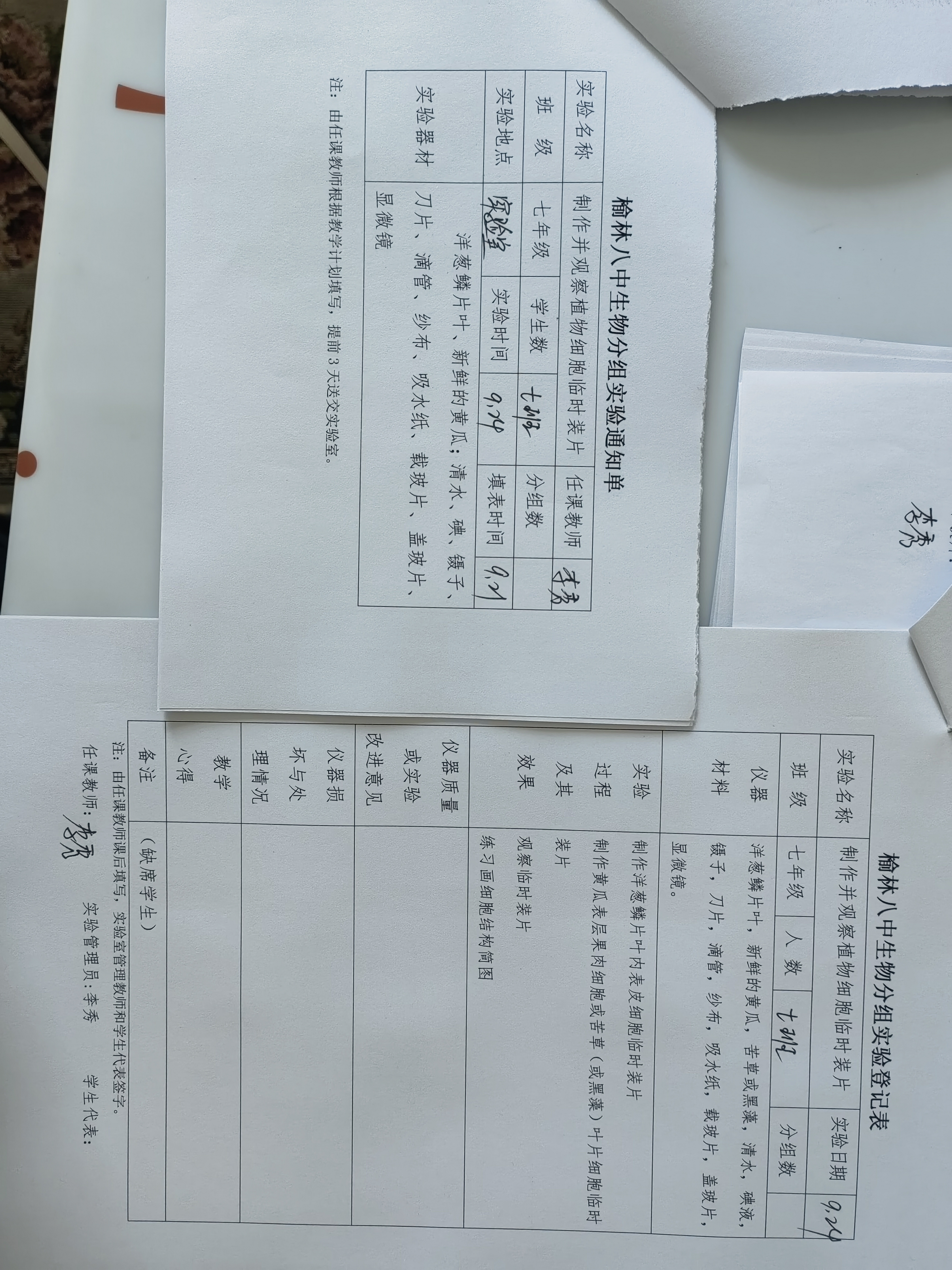 实验登记表