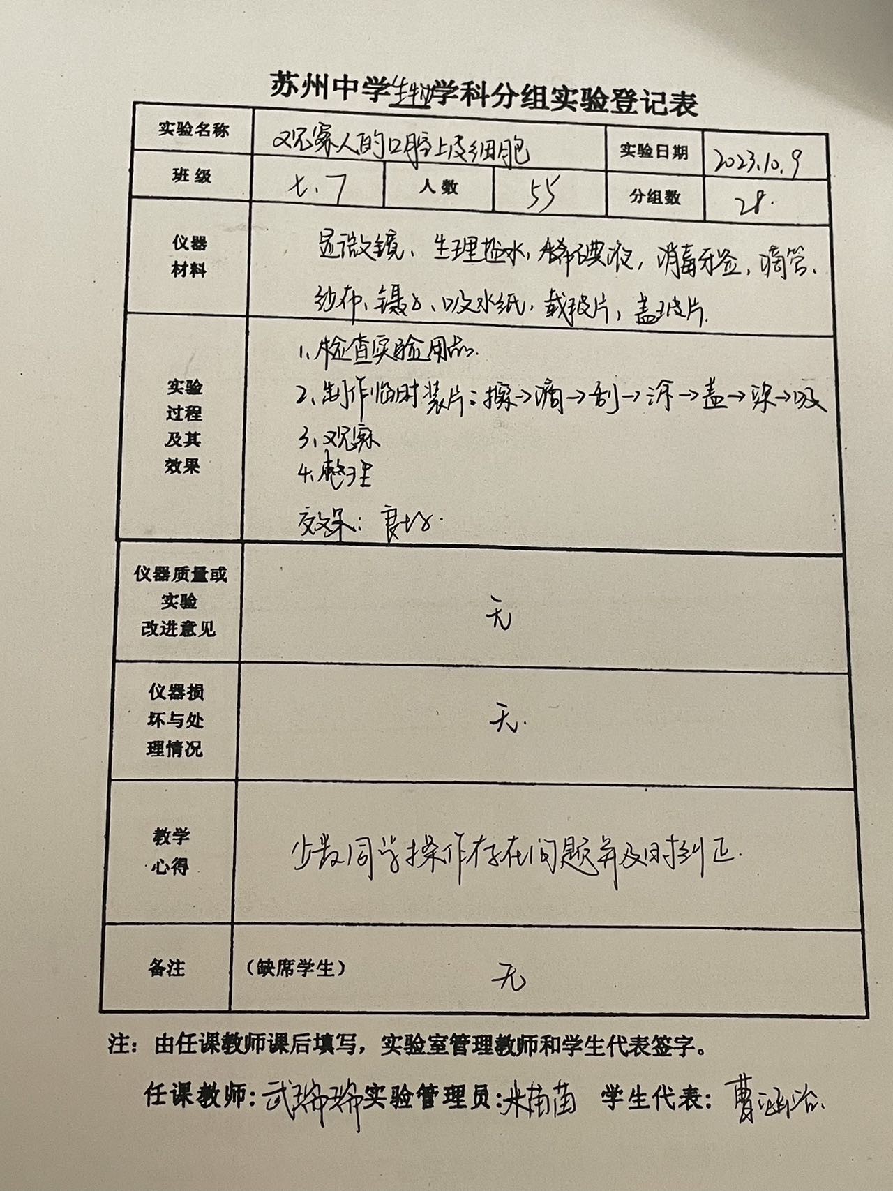 实验登记表