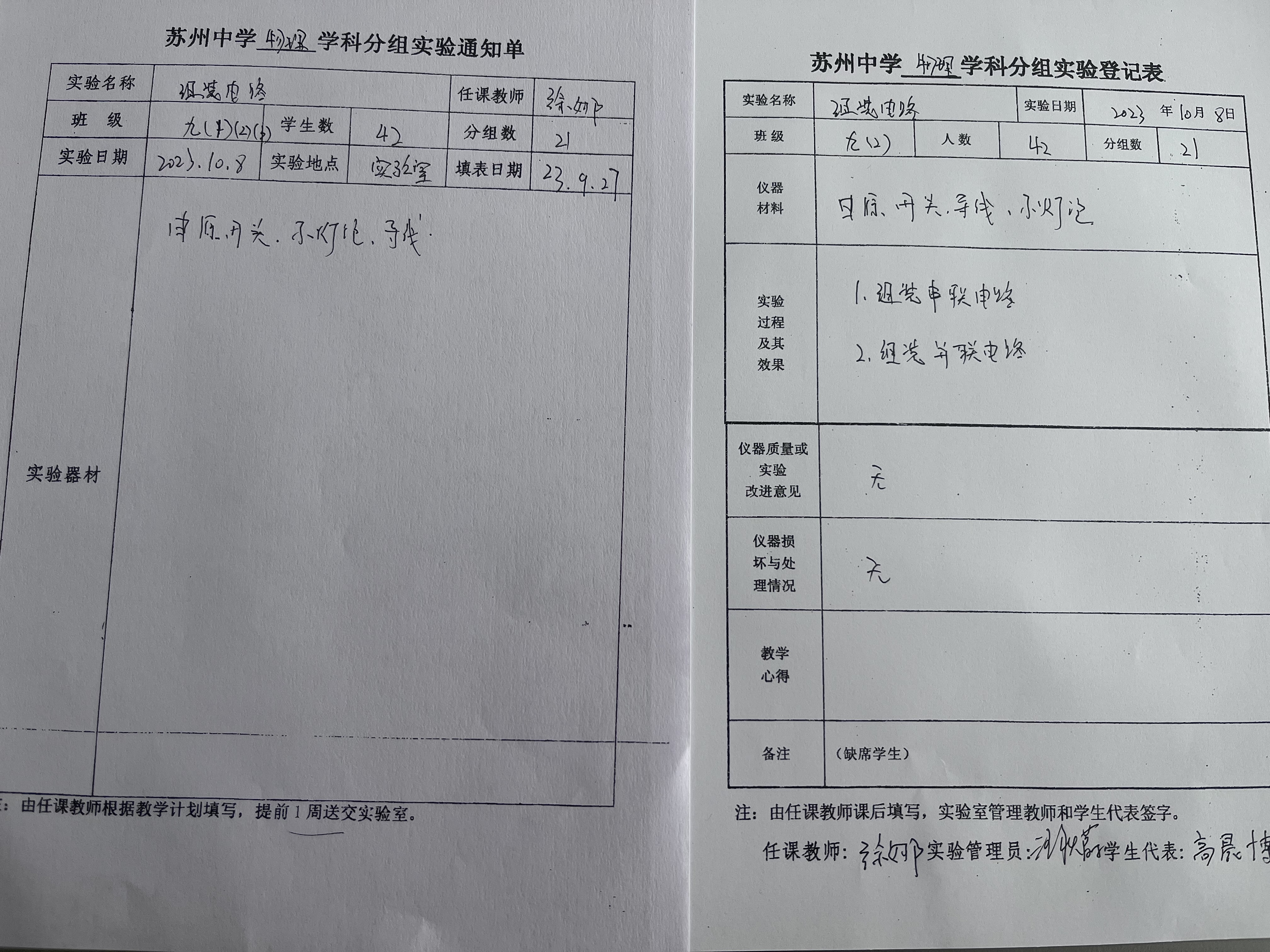实验登记表
