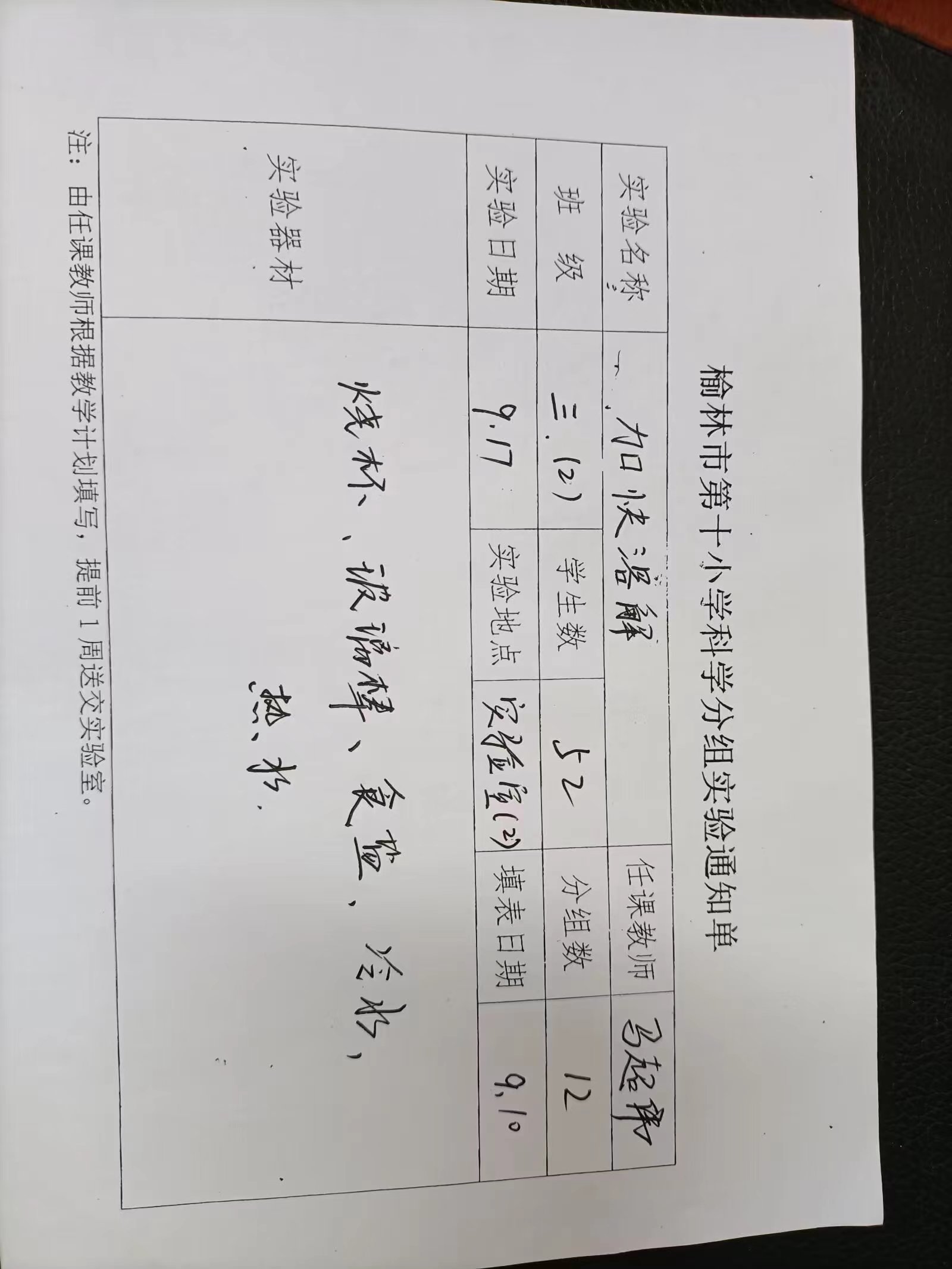 实验登记表
