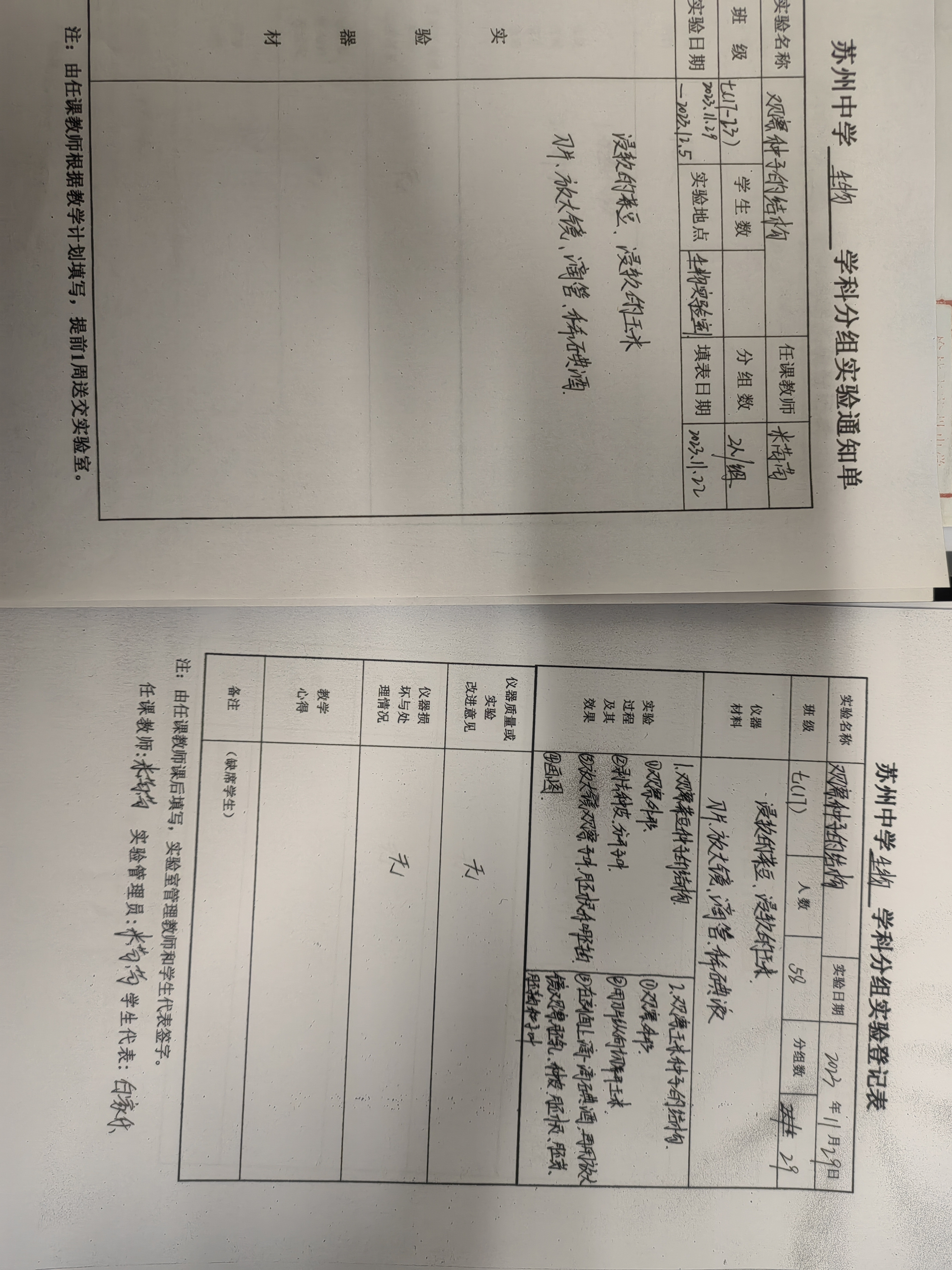 实验登记表